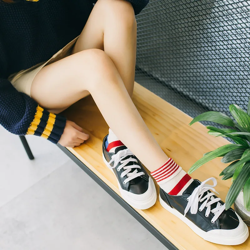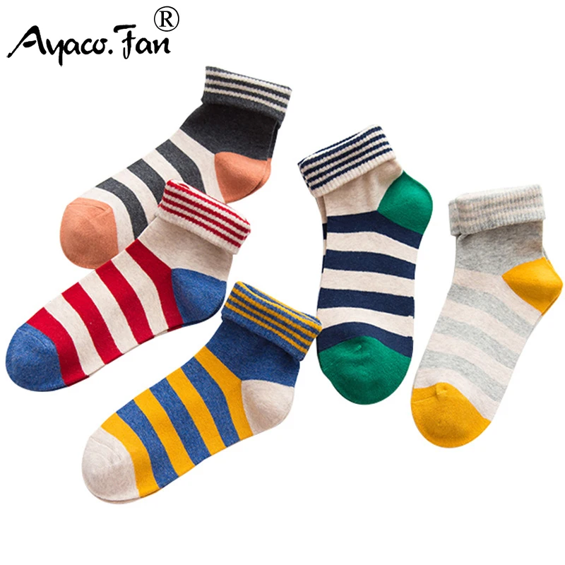 Женские летние и осенние носки, милые тонкие полосатые хлопковые носки в стиле пэчворк для девушек и женщин, 5 парлот, карамельные цвета