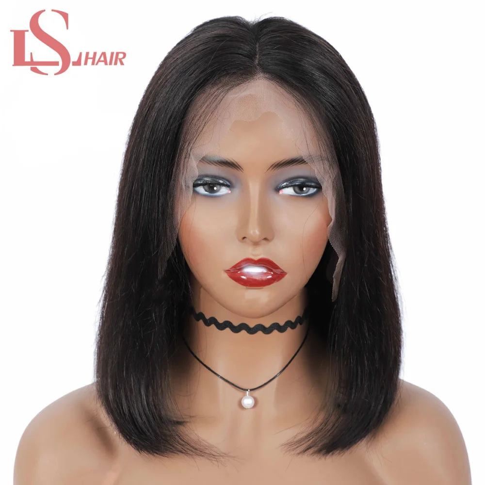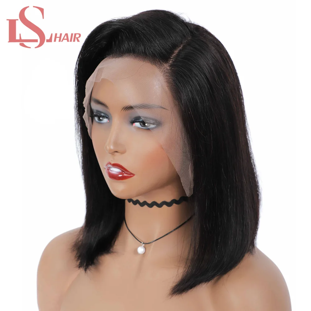 LS волосы прямые короткие Боб кружевные передние парики 13x4 кружевные передние человеческие волосы парик бразильские 4x4 кружевные парики с детскими волосами Remy