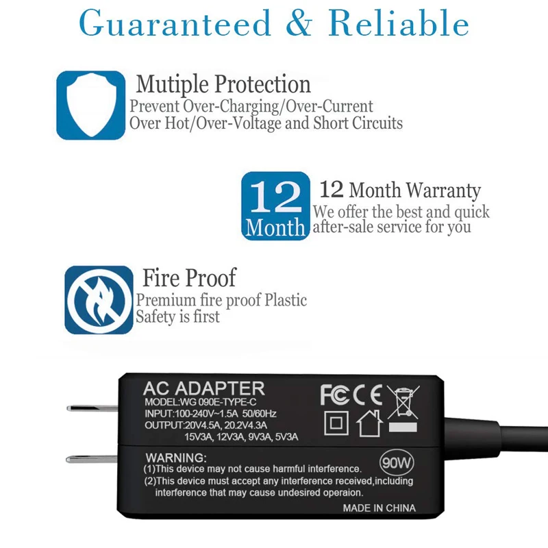 Сетевой адаптер USB Type-C для ноутбука, 90 Вт, 65 Вт, зарядное устройство PD для MacBook 2018, Samsung Chromebook Plus, ThinkPad X1, Yoga 920, FUJITSU U938