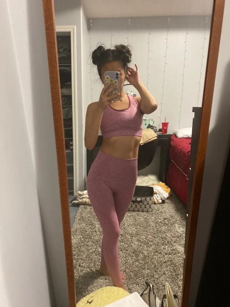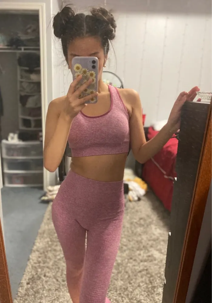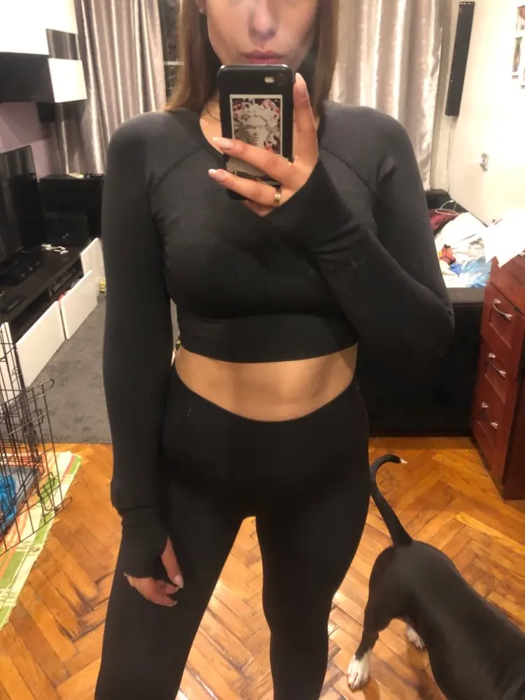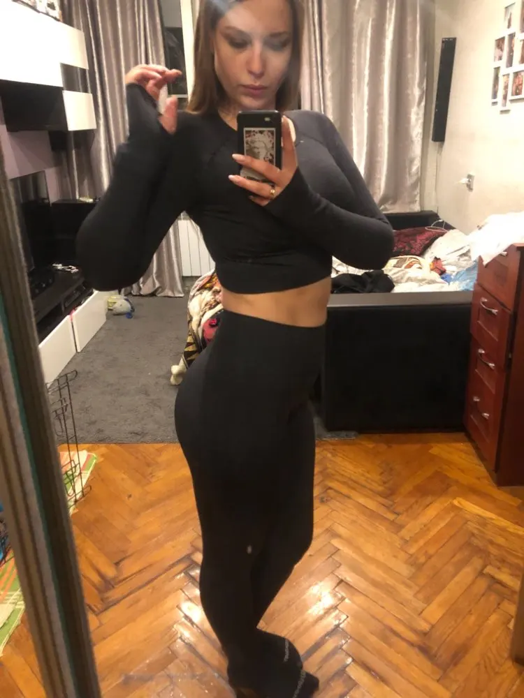 Отличный комплект, лосины правда просвечивают, взяла размер М на свой S, комфортно, посылку пришла очень быстро