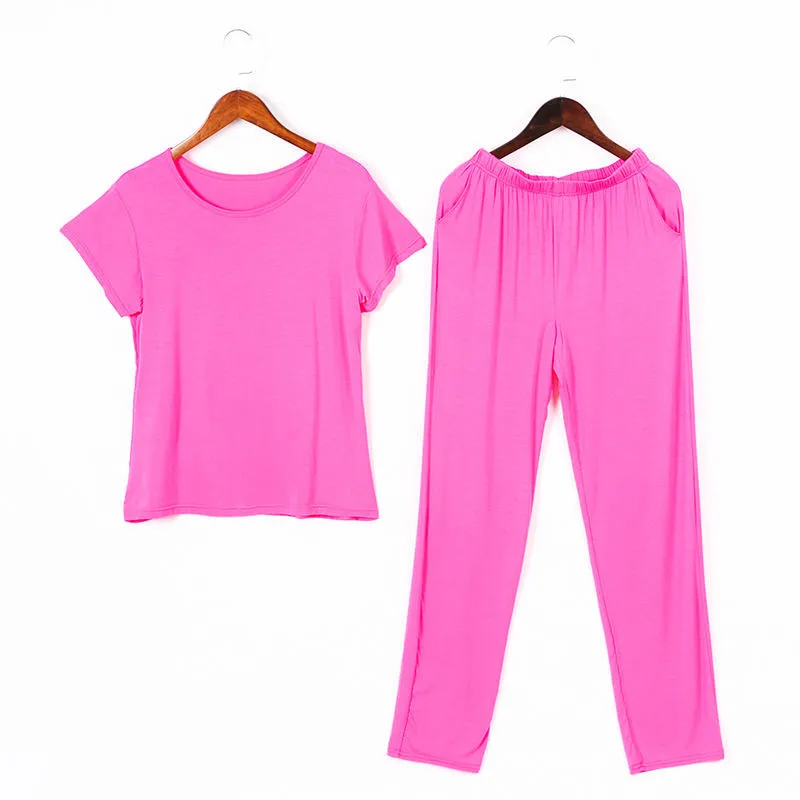 Крутая летняя пижама из модала 2 шт.компл. однотонная женская тонкая пижама из хлопка большого размера Pjs домашняя одежда для сна