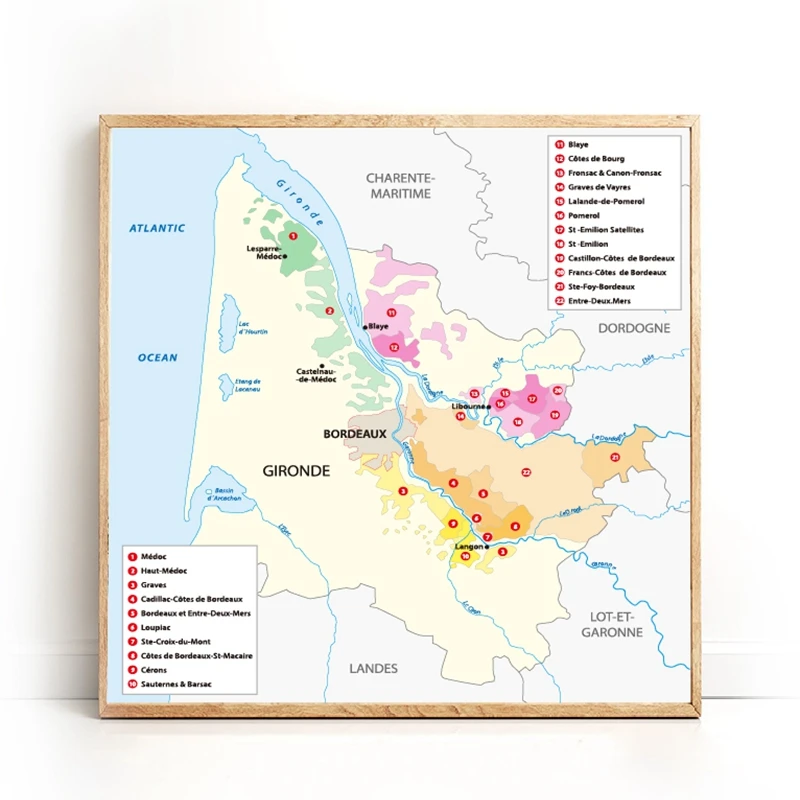 Бордо во французском винном регионе плакат-карта и принты для гостиной настенная живопись на холсте карта испанского винного региона домашний декор