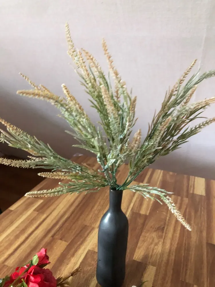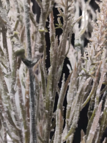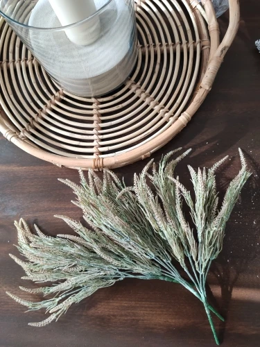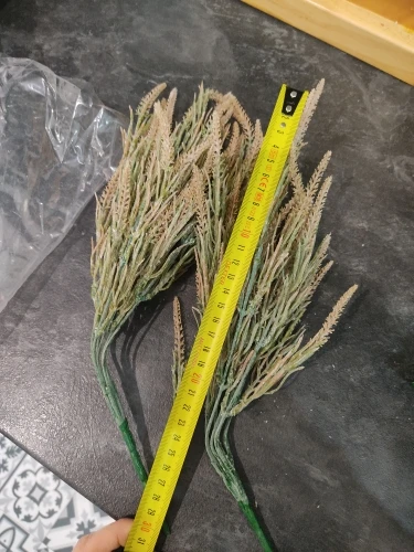 Симпатичные веточки, напоминаю прихваченный морозом хвощ, изготовлены из ПВХ низкой плотности, "посыпка" конечно осыпается, но в пределах нормы, характерный ПВХ запах присутствует, проволока на ножке очень жесткая, режется только ножницами по металлу. В упаковке были сложены пополам, посылка была упакована в пузырчатую пленку и непромокаемый светонепронецаемый пакет. Спасибо продавцу за быструю доставку (до УФО около 17 дней).