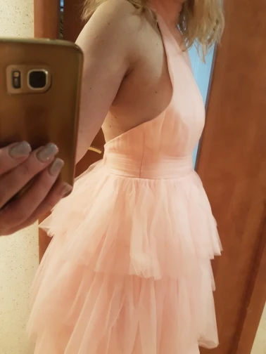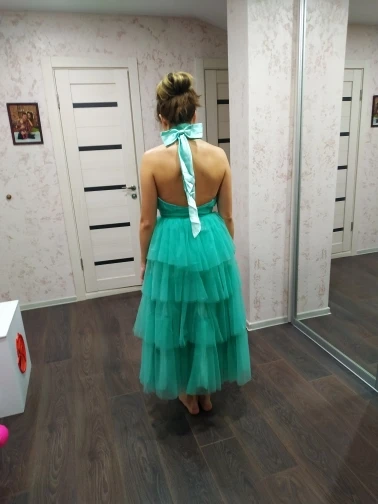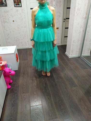 Совершенно не понравилось платье. Я могла бы сшить лучше. Воланы подола пришиты прямо наверх подъюбника, швы не спрятаны внутрь под подклад. Верх несуразный, как фартук, тело не облегает, открывает для обзора половину груди. шея... вам придется влезть в то что есть, потому что нет возможности что либо регулировать. Кнопки пришиты руками, торчат узлы и нитки. Ощущение страшной кустаршины. Сохраните ваши деньги. Не рекомендую. Открыла спор, хотела вернуть это платье продавцу. алиэкспресс предложил 2 варианта, возврат платья за мой счет и возврат полной стоимости платья продавцом, и второй возврат 1600 р, я выбрала 1 вариант а продавец 2, алиэкспресс на стороне продавца тут же спор завершил. Так что я купила платье которое выброшу, его даже исправить не хватит ткани.