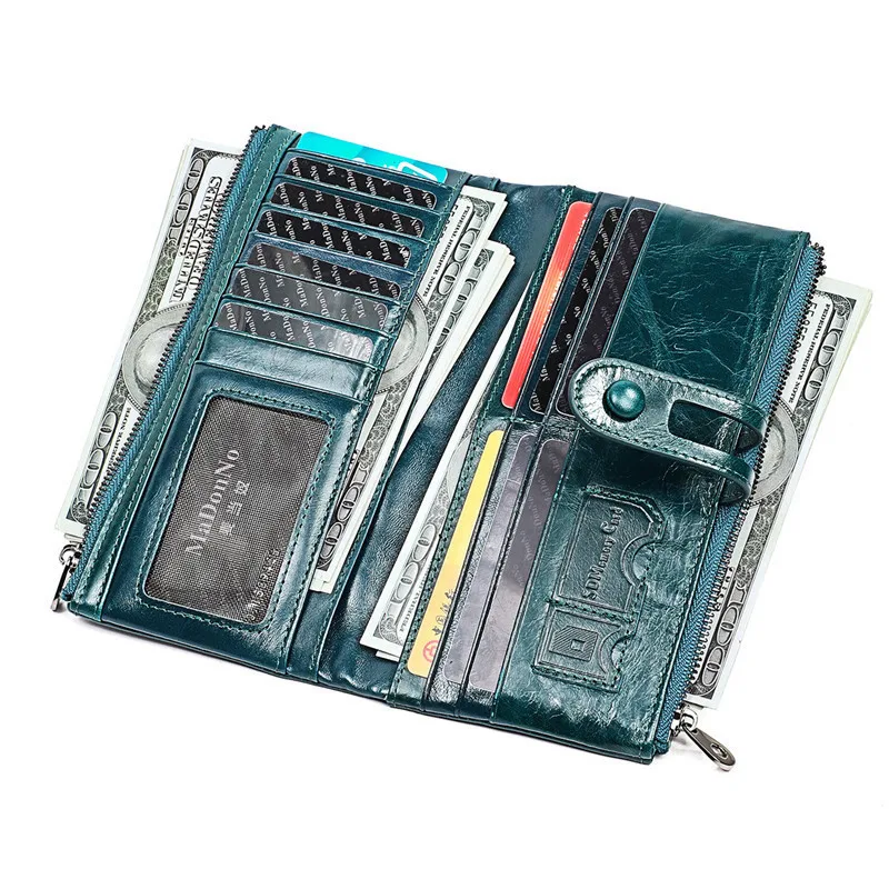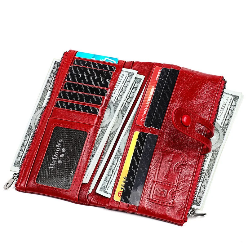 Кошелек женский из воловьей кожи с RFID-защитой, длинный клатч на молнии с застежкой, бумажник из натуральной кожи