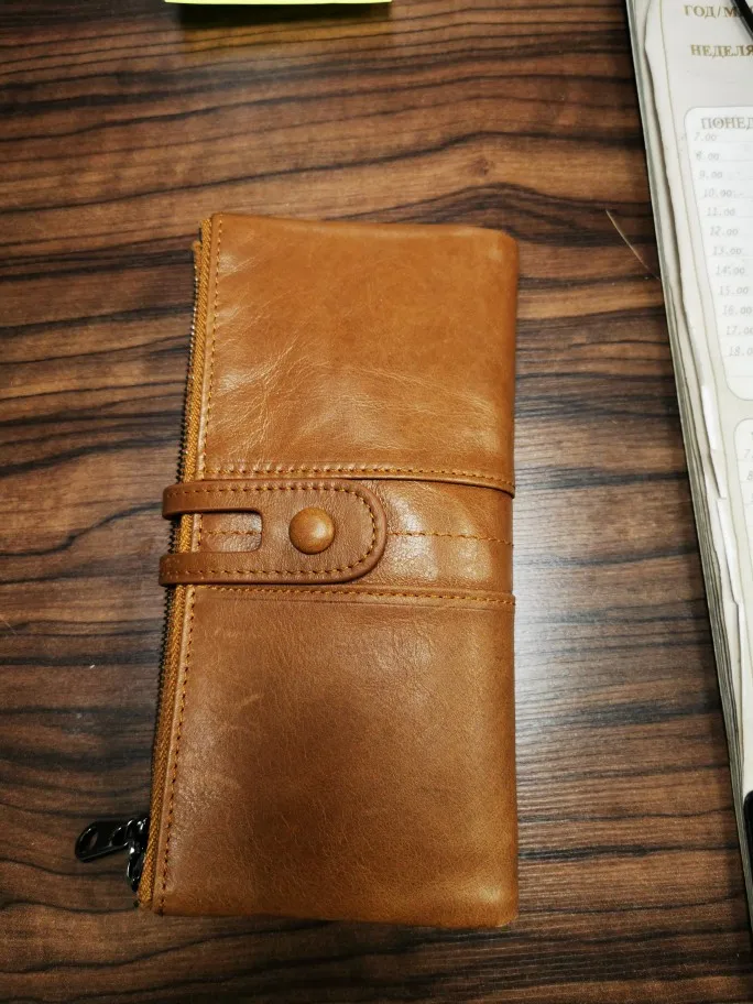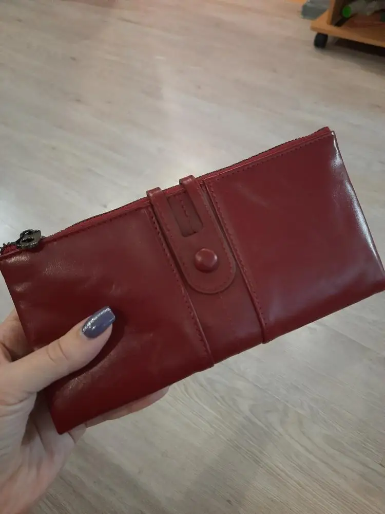 Обалдеть! Какой хороший кошелек! Много карманов, всё продумано. Натуральная кожа. Проверила. Хотя с виду и наощупь видно что это кожа, но решила удостовериться наверняка. Мягкая, приятная. Общий внешний вид кошелька смотрится очень даже хорошо. Цвет соответствует фото. Закажу ещё один для дочери в подарок. Такой и в руки приятно взять, и деньги в нем держать, и подарить.