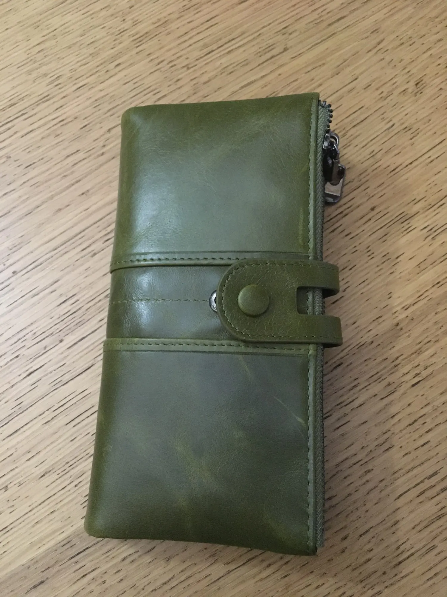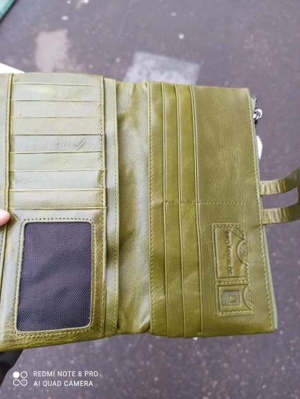 Кошелек сделан хорошо и из кожи. На фотография не видно, что там есть карман снаружи, который кверх ногами, если кошелек закрыт.