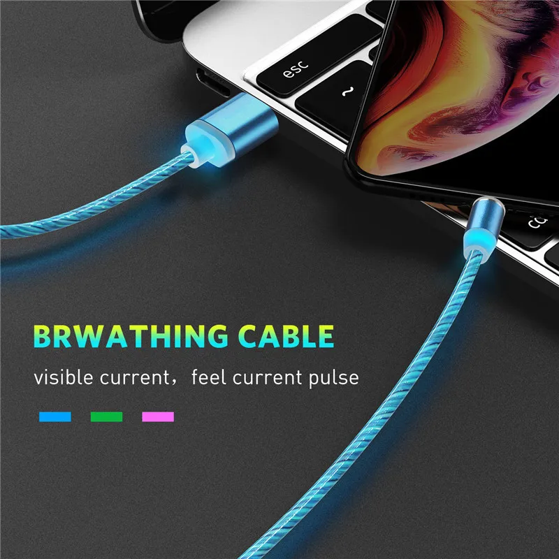 Светящийся Магнитный зарядный кабель Type-C Micro USB для Samsung A...