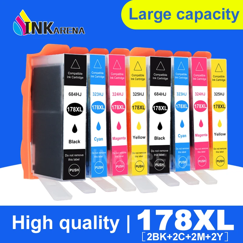 Чернильный картридж INKARENA для принтера HP 178 XL 178XL Photosmart 5510 5515 6510 6512 7510 7515 B109a B109n B110a, 2 комплекта