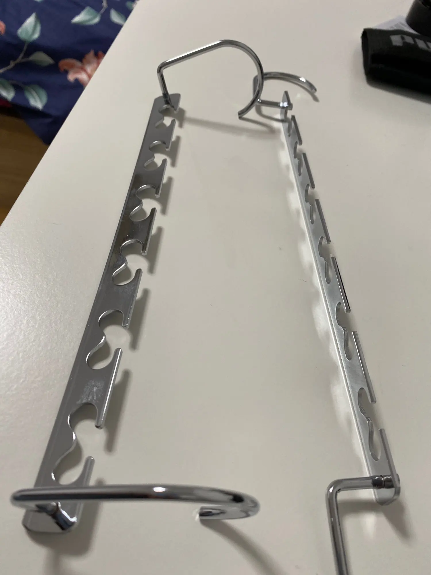 Он очень быстро прибыл в Мадрид, Испания. Именно то, что я ожидал. Очень полезный предмет, экономит место в шкафу, а также металлический и выглядит хорошо законченным.