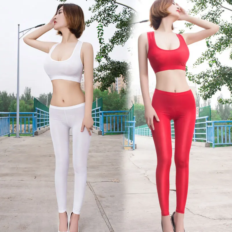 Женские ледяные шелковые гладкие прозрачные брюки-карандаш, прозрачные эластичные облегающие леггинсы карамельных цветов, глянцевые модные брюки с низкой талией