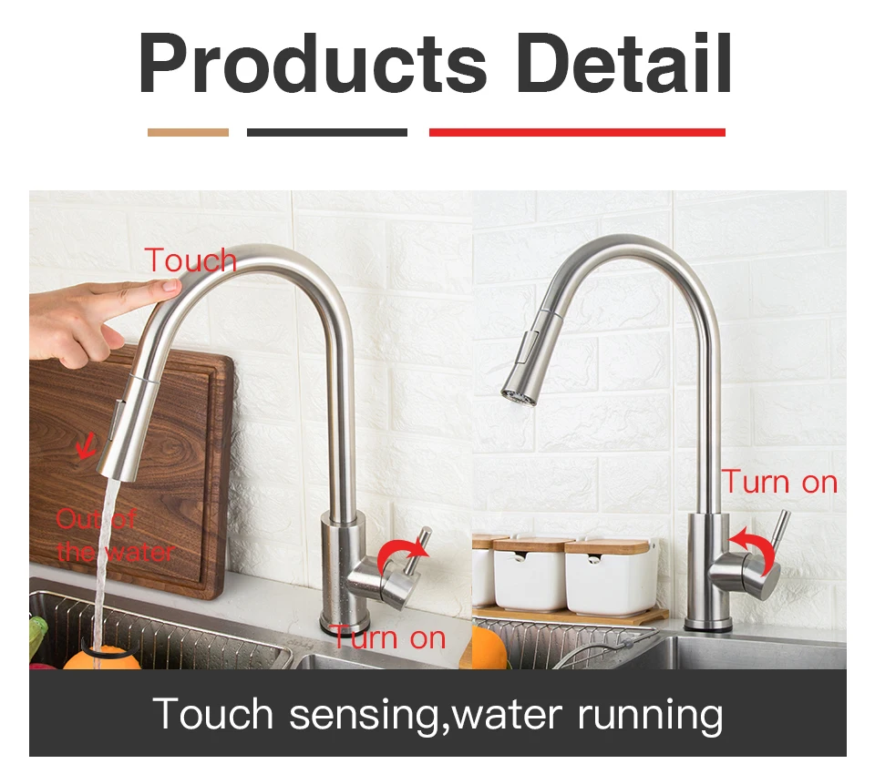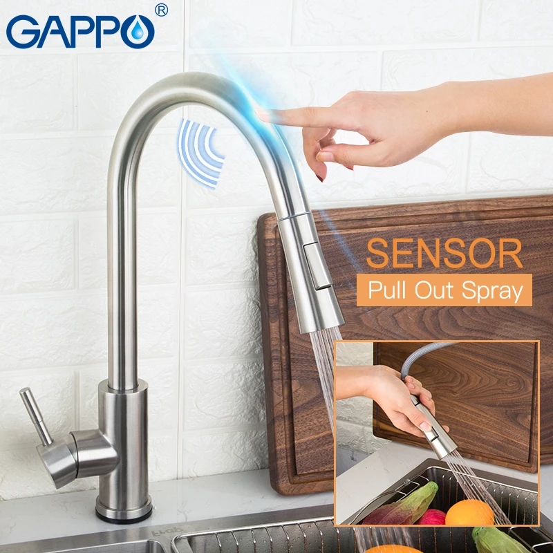 Кухонный Смеситель GAPPO, выдвижной сенсорный кран из нержавеющей стали, одна ручка, два режима подачи воды