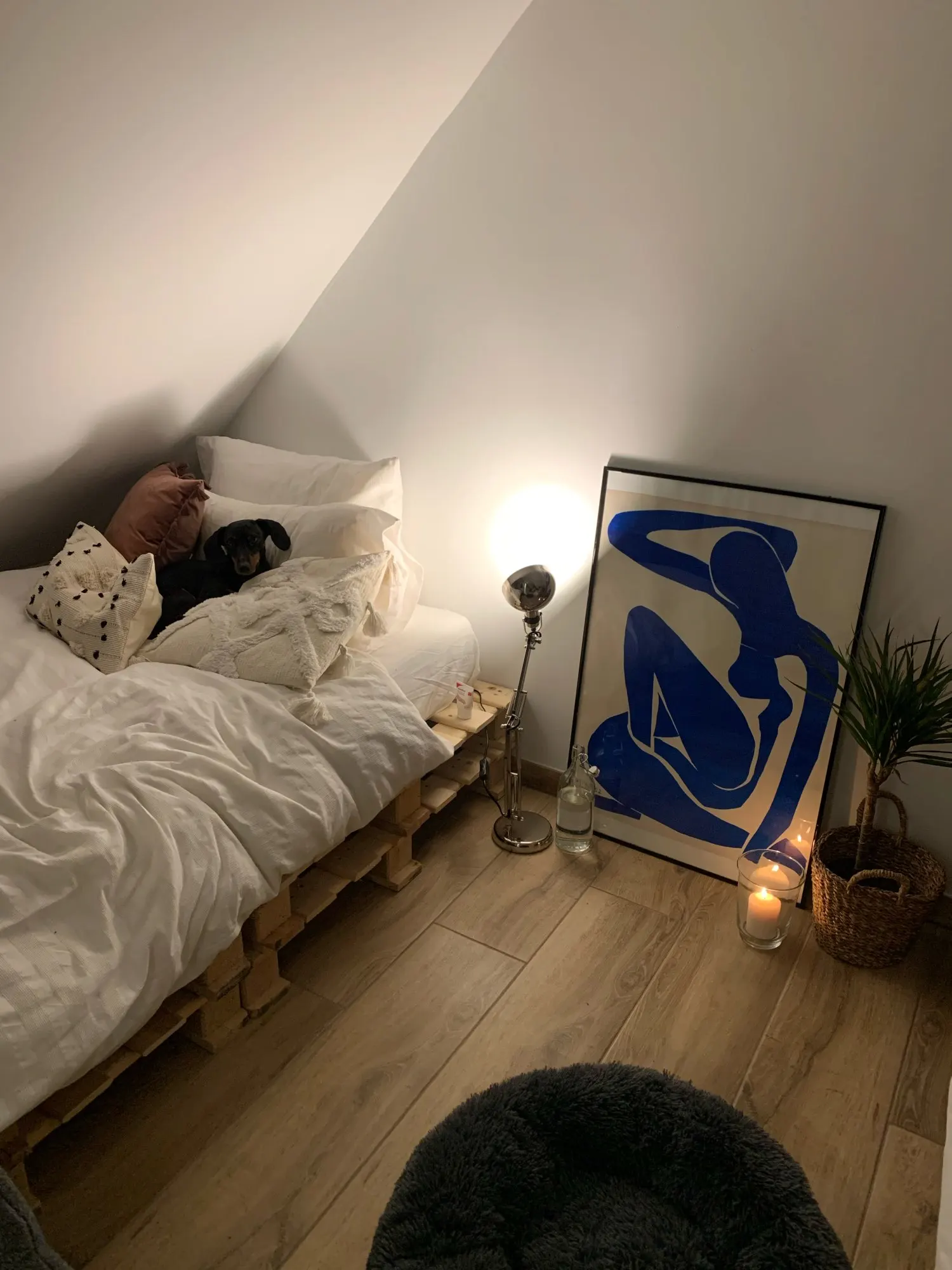 Возможно, он был поврежден при транспортировке, но, к сожалению, он немного поврежден. При заказе без белой рамки она больше 50 см x 70 см (более или менее 60x80) И он не подходит под наиболее распространенные рамки, или вам придется заказать рамку «ur mesure».