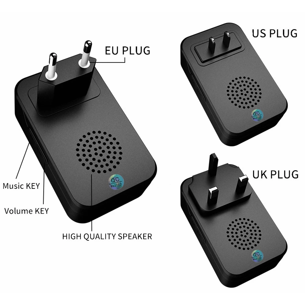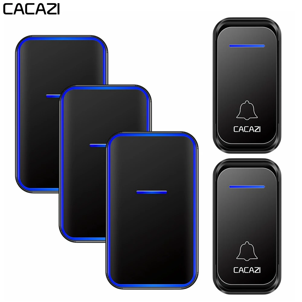 Беспроводной дверной звонок CACAZI, водонепроницаемый, с 1, 2 кнопками на 1, 2, 3 приемника, дальность 300 м, умный, для домашней двери