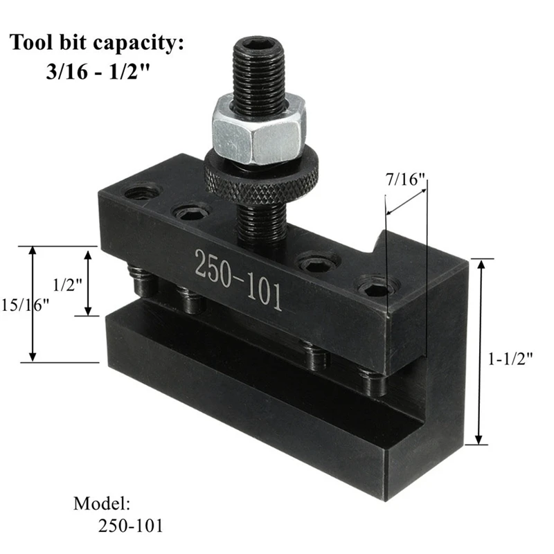 Быстрый и просты в установке. Надежно удерживает 3/16 - 1/2 дюйма квадратный диаметр вставные резцы.Точность заземления и закаленные. Полностью герметичный для обслуживания свободной работы.Максимальная жесткость для бесконтактной работы. Поворотный и облицовочный инструмент можно заблокировать вместе.Для использования с инструментом AXA post 250-100 или 250-111.Подходит для широкого спектра операций, от точной работы до тяжелой резки.Модель: 250-101Материал: Высокоскоростная стальЦвет: черныйТокарные качели: до 12 дюймовИнструмент производительность бурового долота: 3/16 - 1/2 дюймаРазмеры: 7,6*3,3 смПосылка: 1 * держатель токарного инструментаТолько вышеуказанная посылка, другие товары не включены.Примечание: светильник и различные дисплеи могут привести к тому, что цвет товара на картинке немного отличается от реального. Допускается погрешность в измерениях +/- 1-3 см.