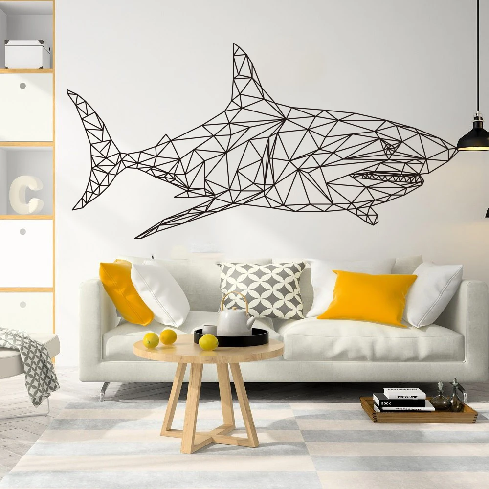 Геометрическая Наклейка на стену в виде акулы, Кита, рыбы, океана, детская комната, большая мультяшная Акула, рыба под морем, искусственный винил