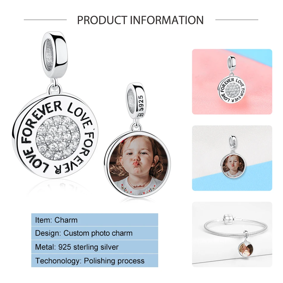 ELESHE колько Forever Love пользовательские фото Круглый Шарм 925 с...