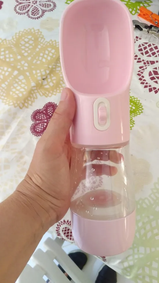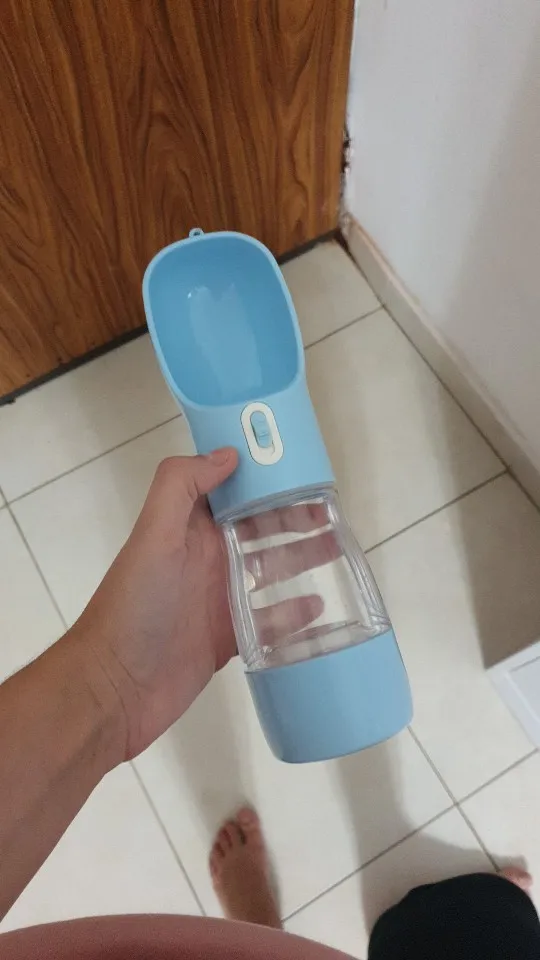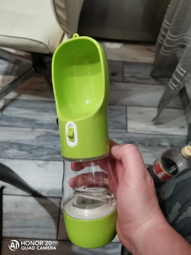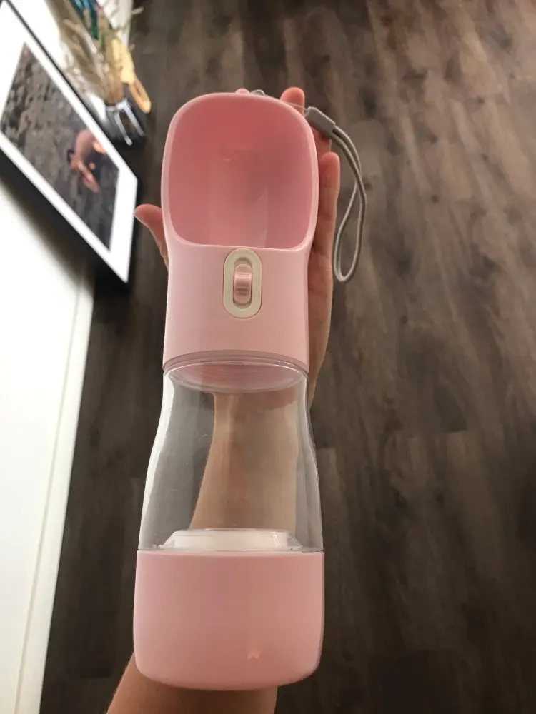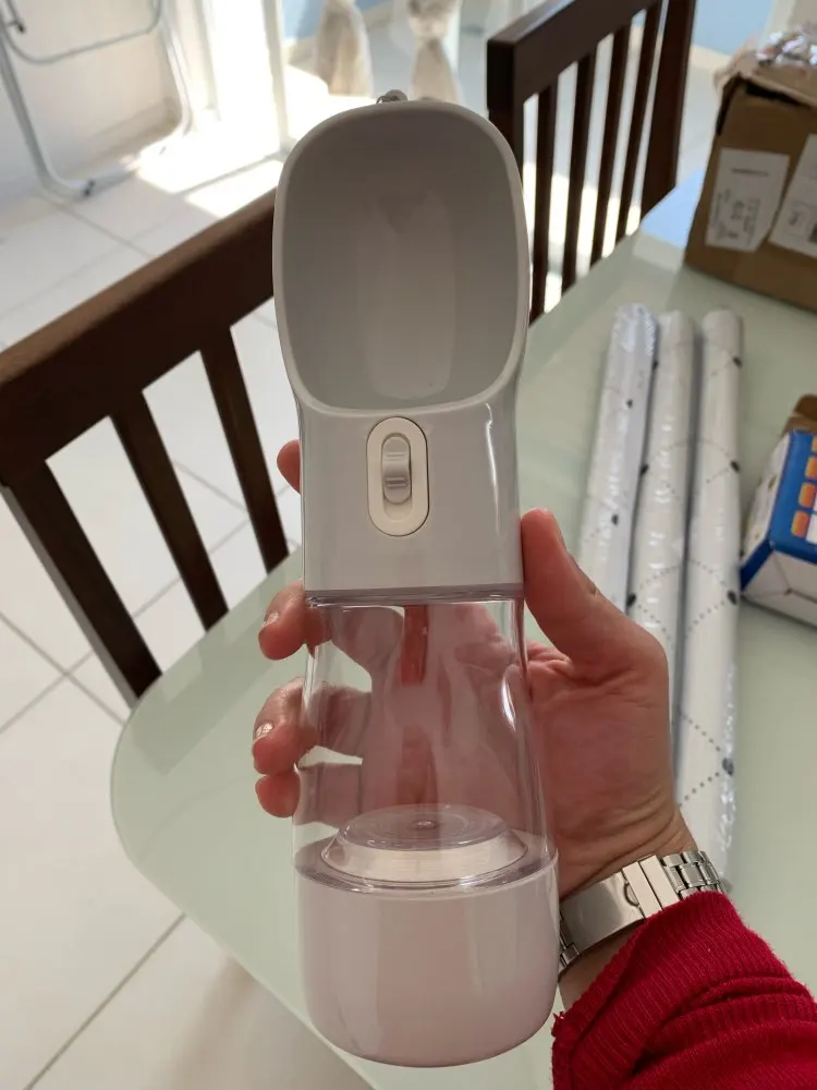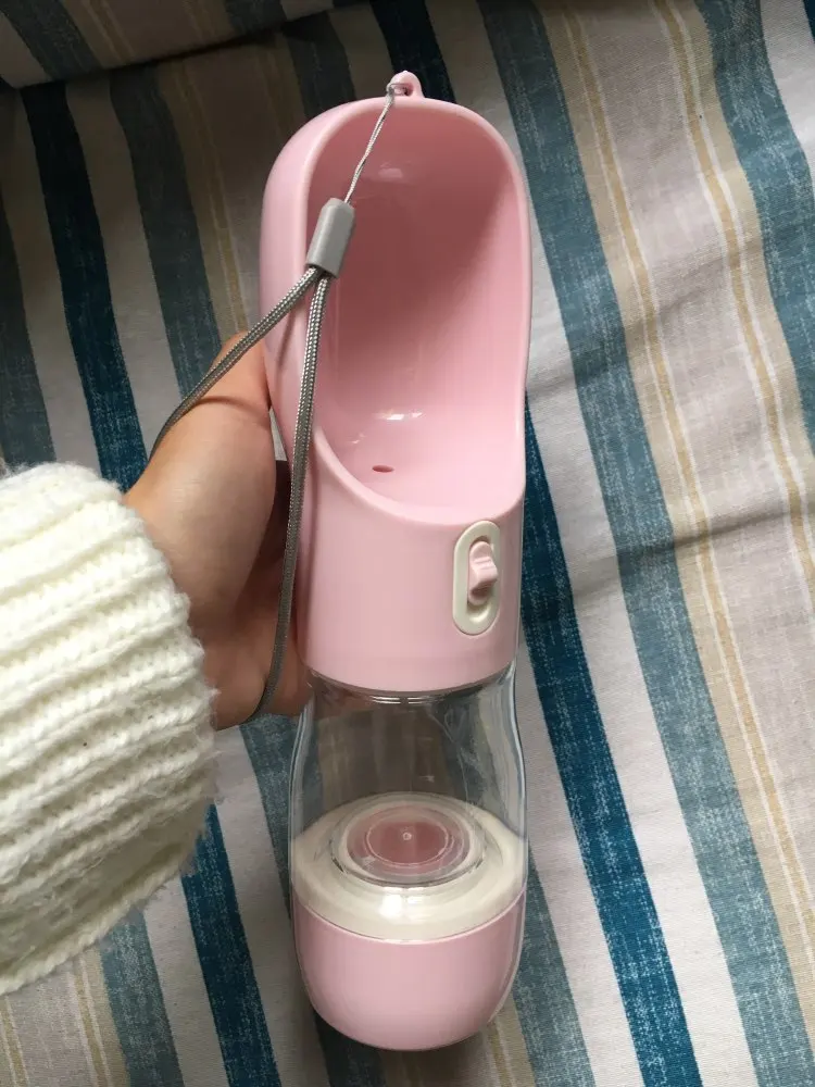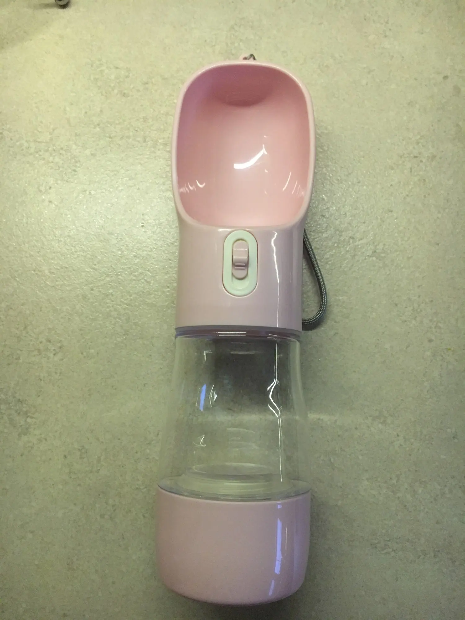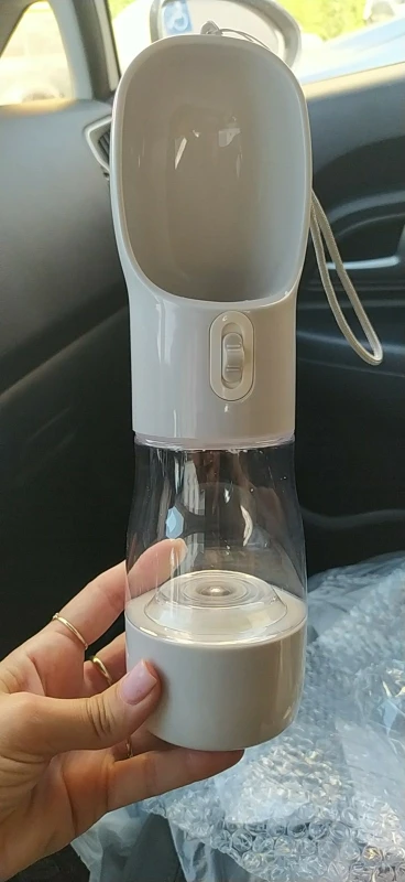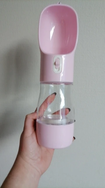 Супер удобная и красивая бутылка. Есть отделение для сухого. Уже брали с собой и собака отлично пьёт воду. Внешне тоже очень симпатичная, хорошего качества.