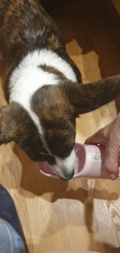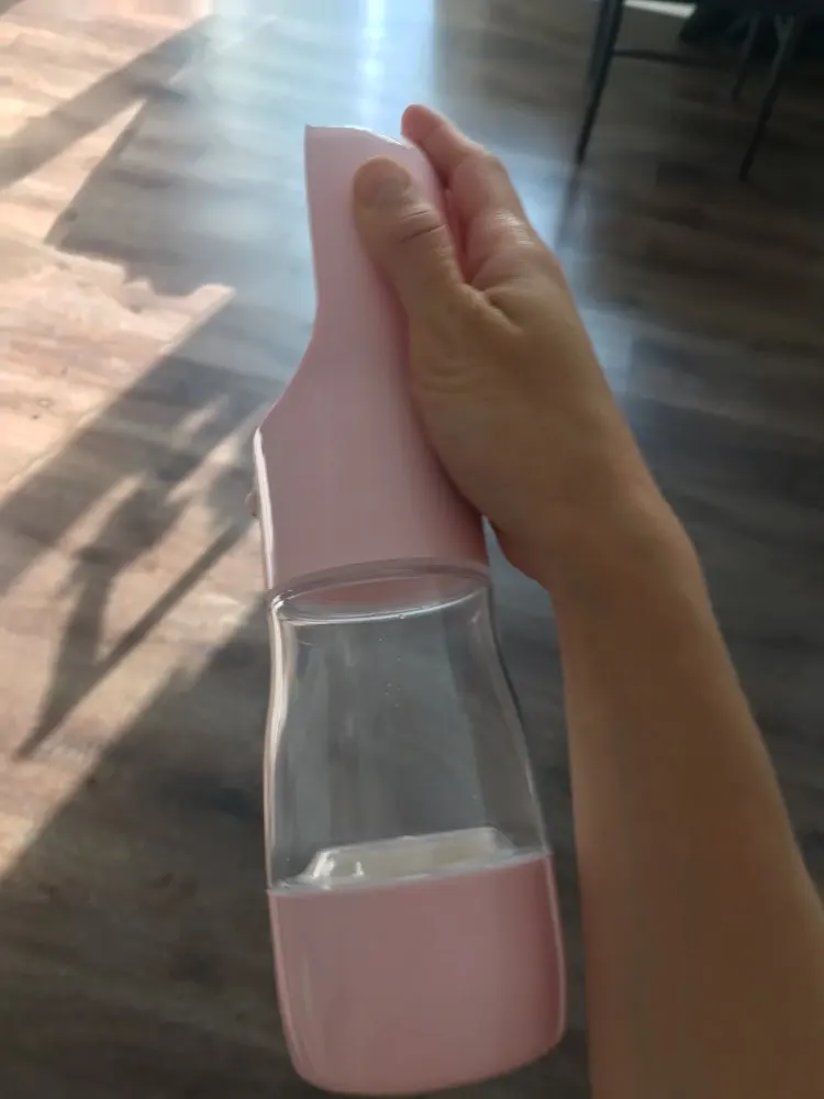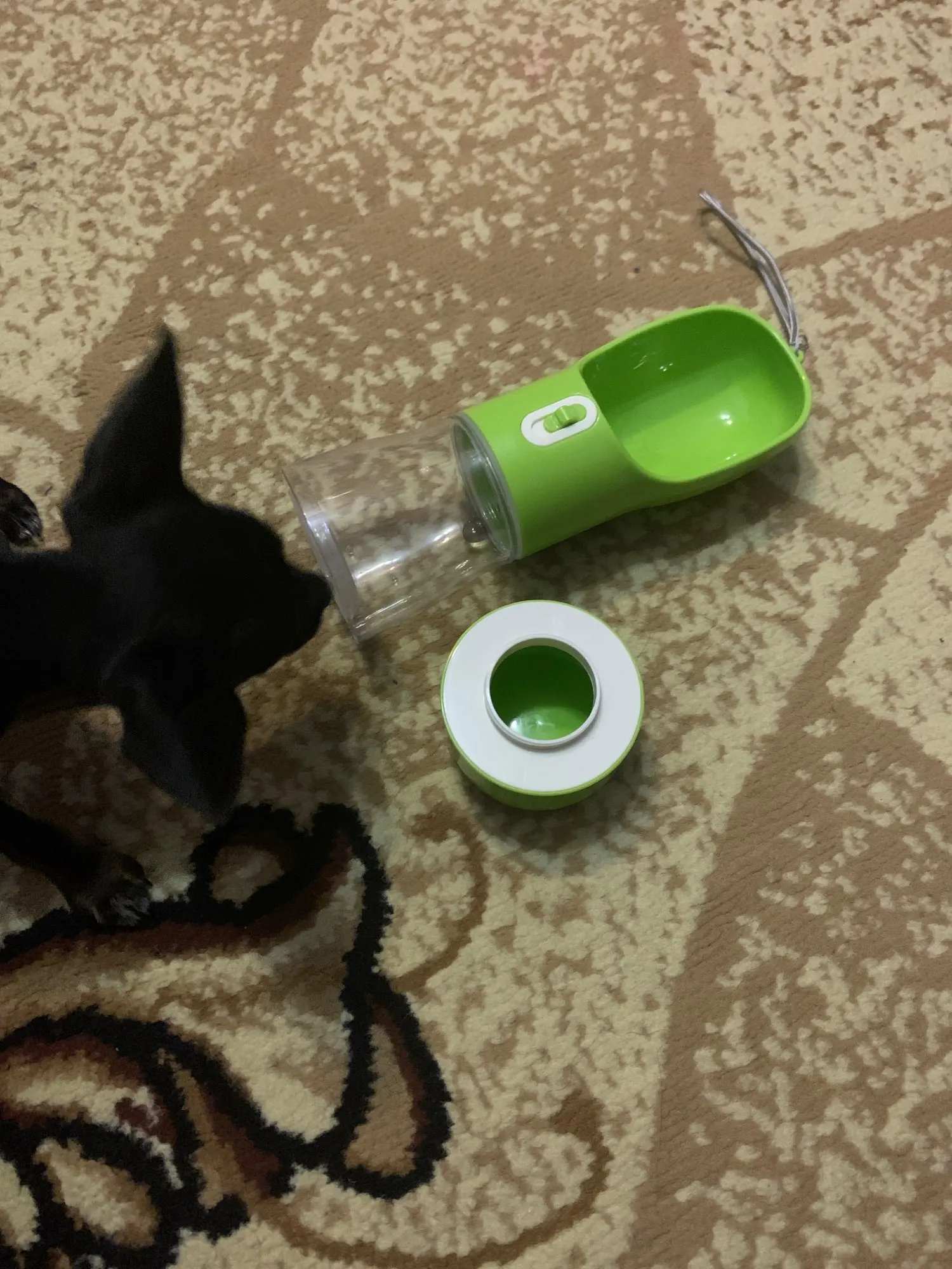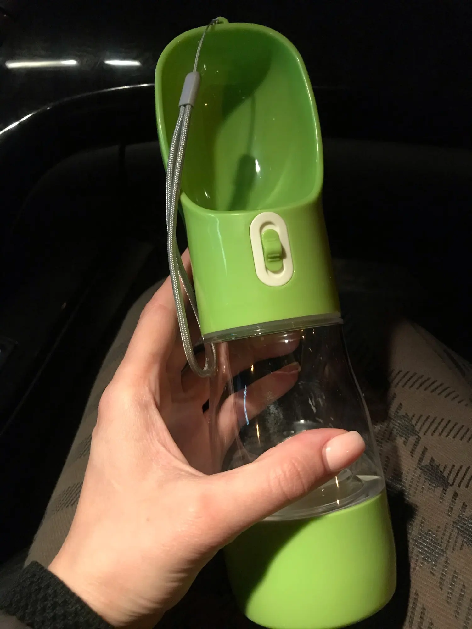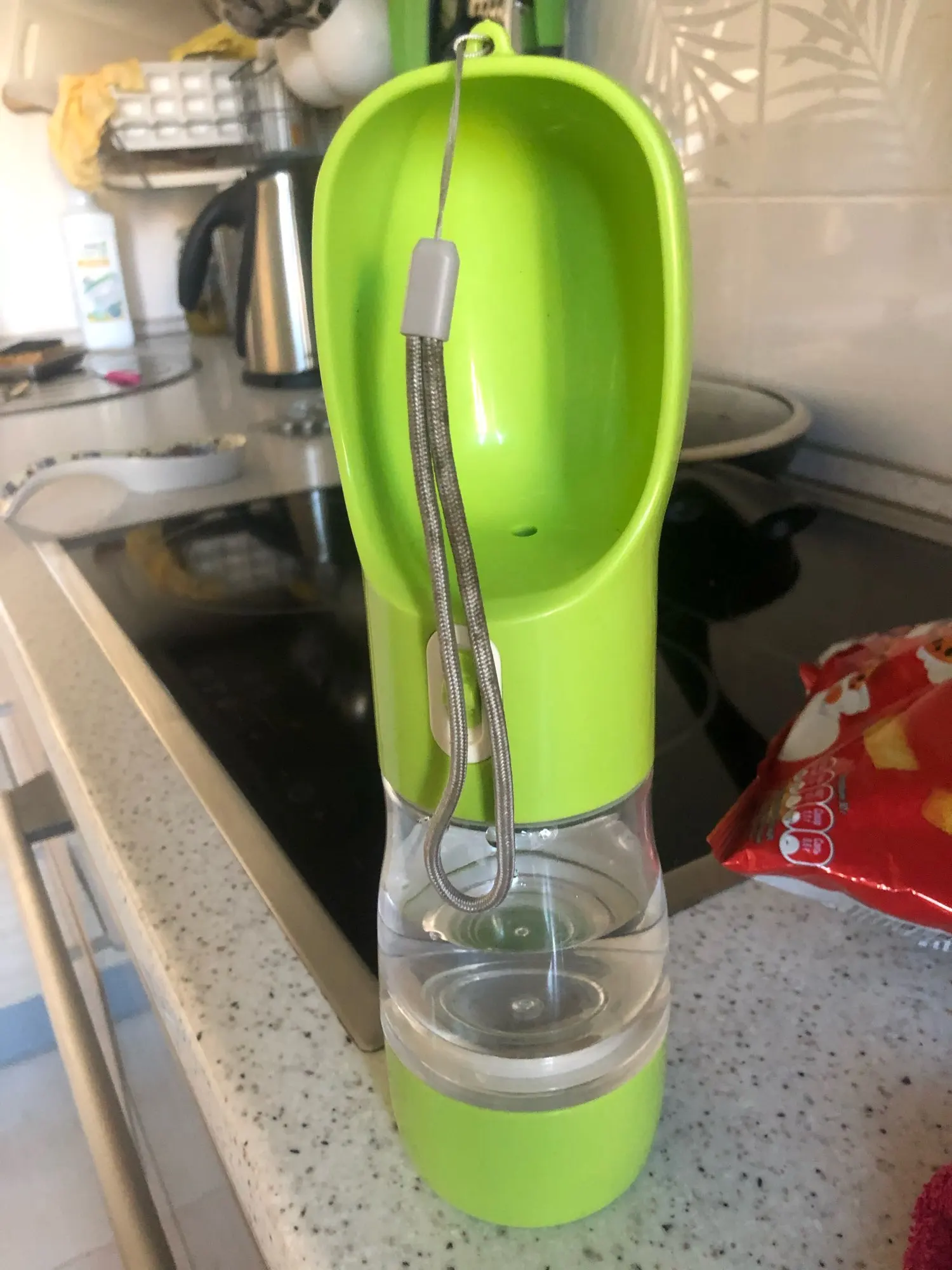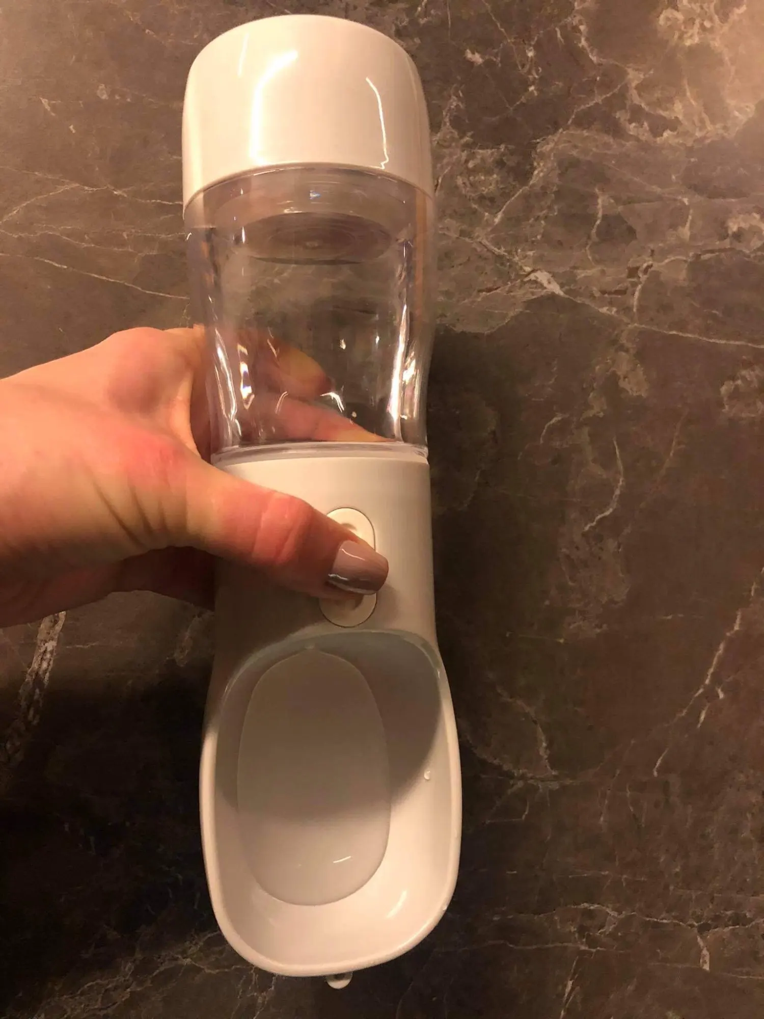 Супер удобная и красивая бутылка. Есть отделение для сухого. Уже брали с собой и собака отлично пьёт воду. Внешне тоже очень симпатичная, хорошего качества.