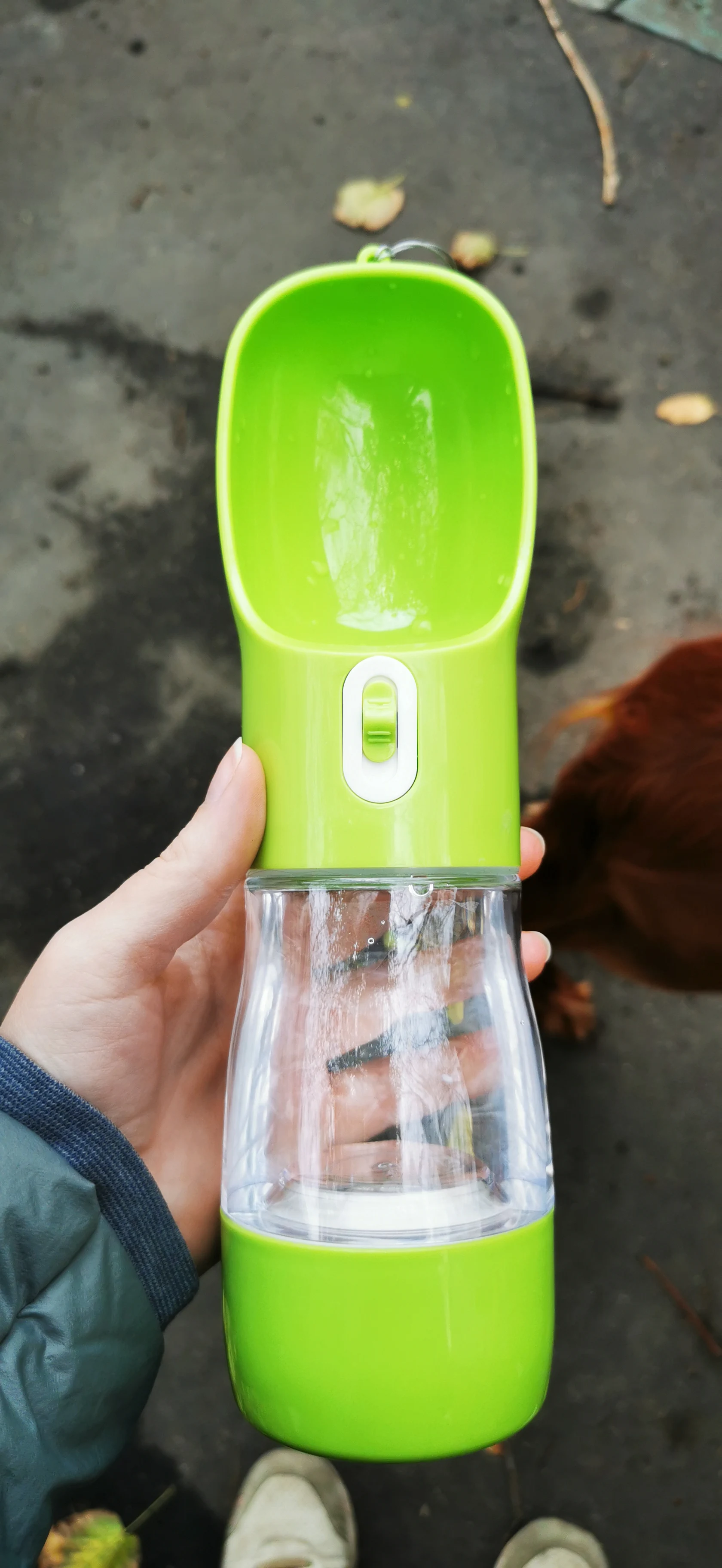 Отличная бутылка для небольшой собаки. Есть отделение для корма