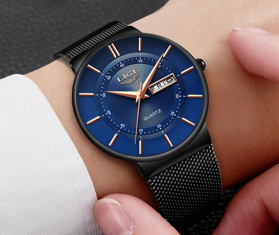Часы наручные LIGE Мужские кварцевые, брендовые Роскошные простые в...