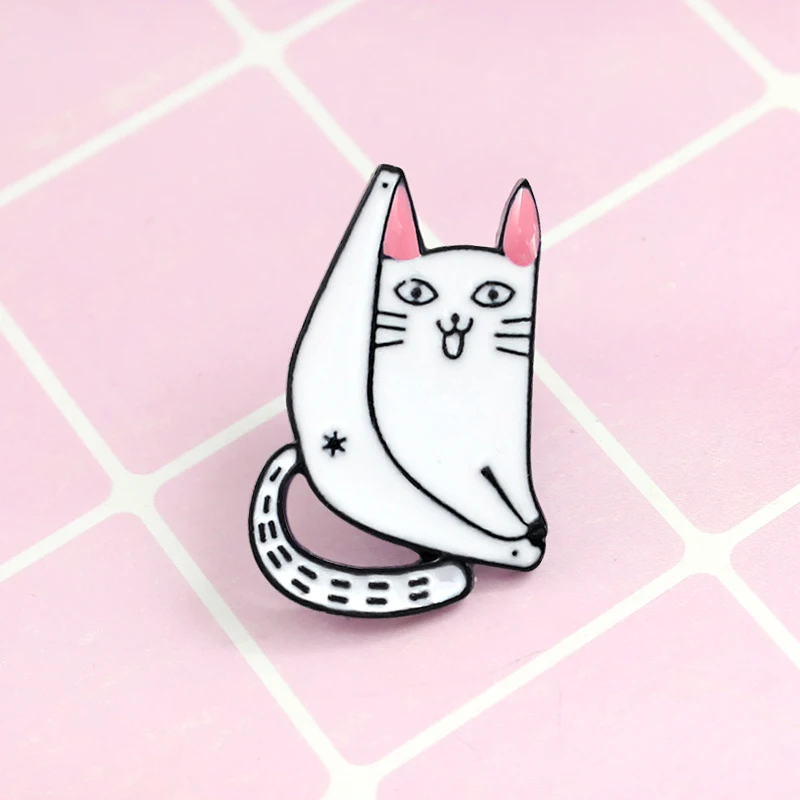 Забавная озорная белая брошь котенок длинный хвост и длинные ноги Модные женские эмалированные нагрудные Куртки сумка шляпа значок подарок