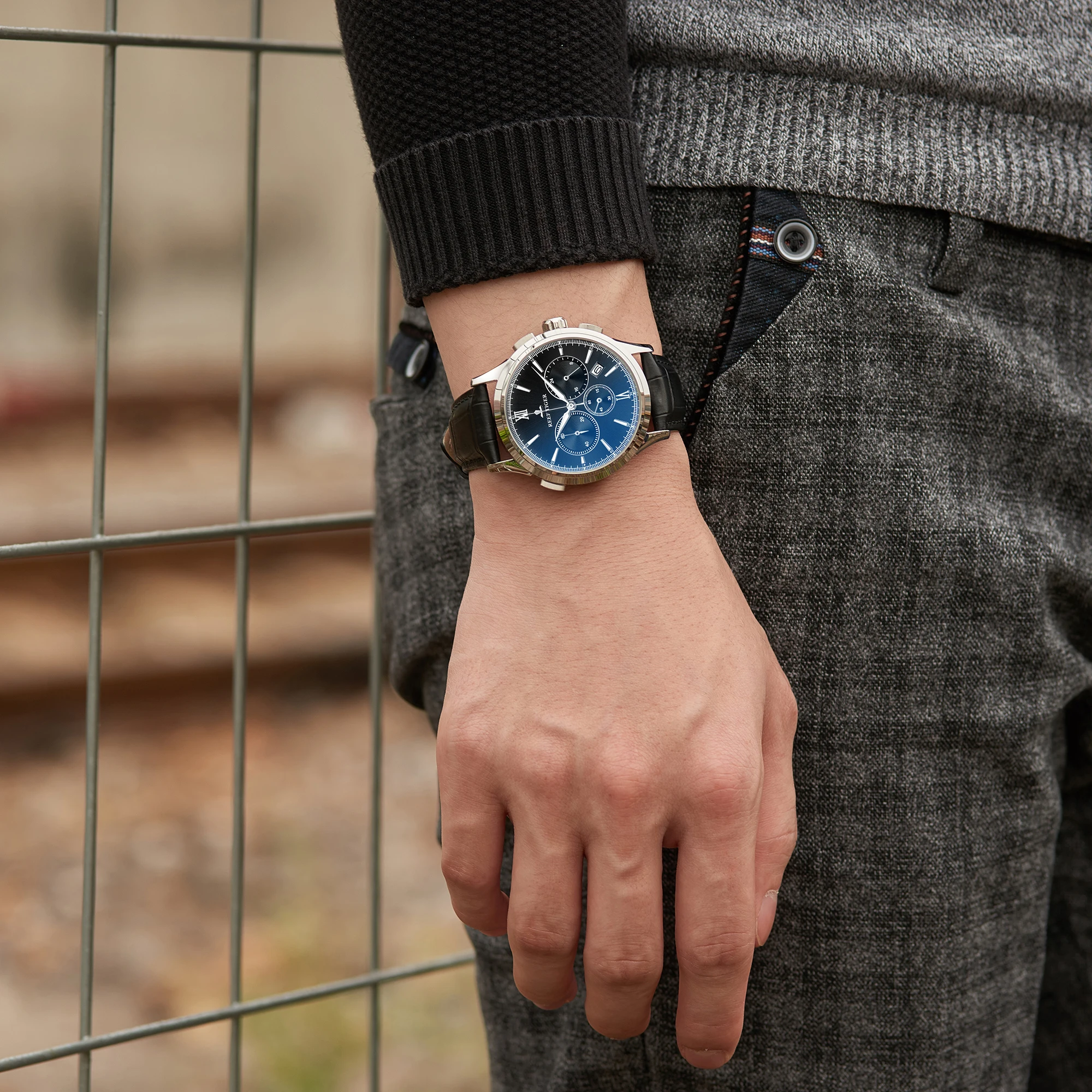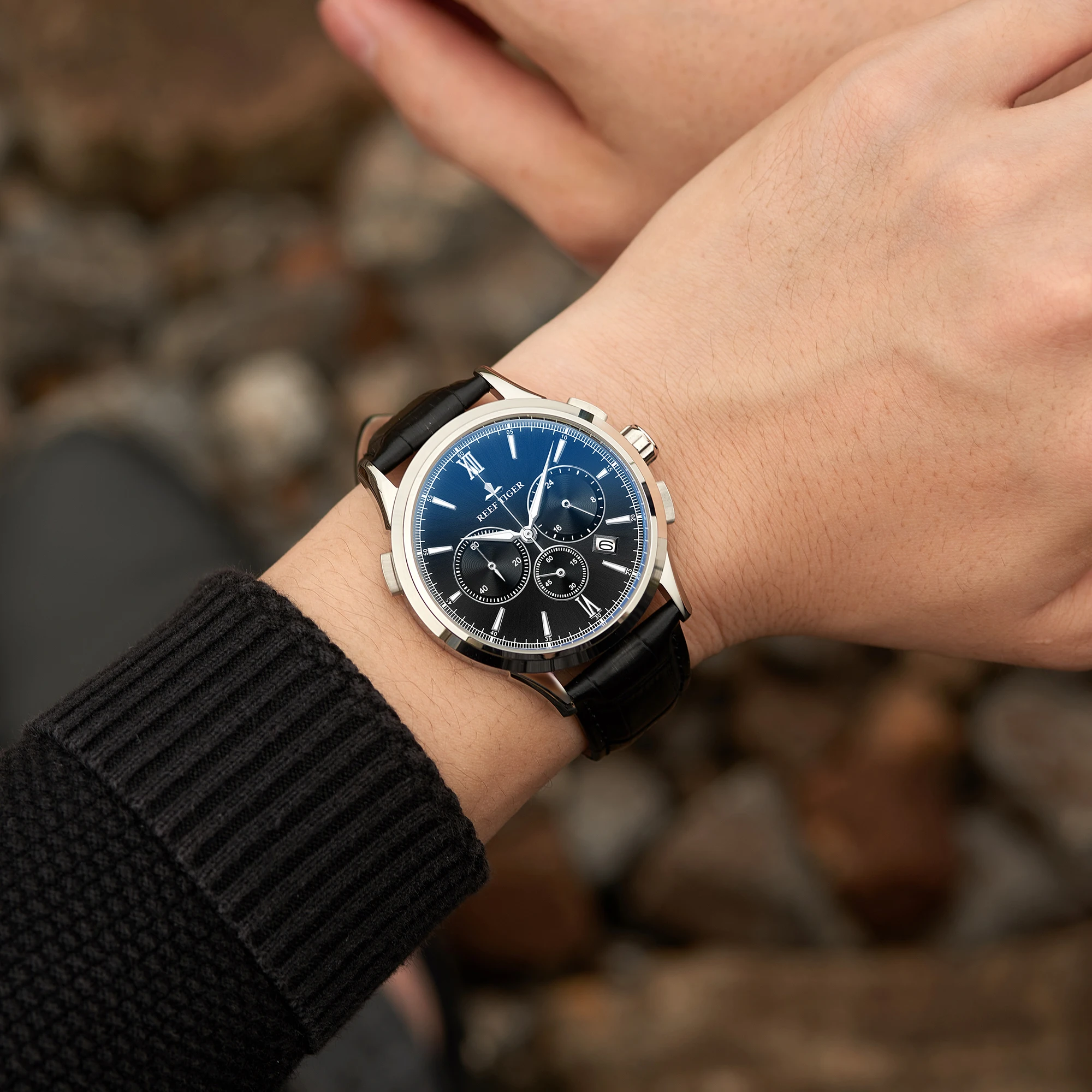2019 Риф ТигрРТ роскошный черный циферблат стальной корпус стальной хронограф кварцевые с черным кожаным ремешком часы