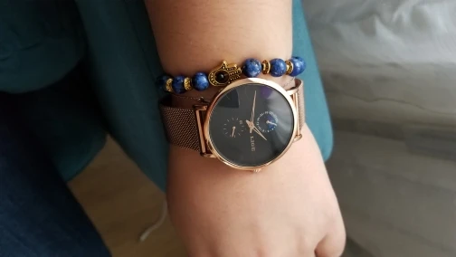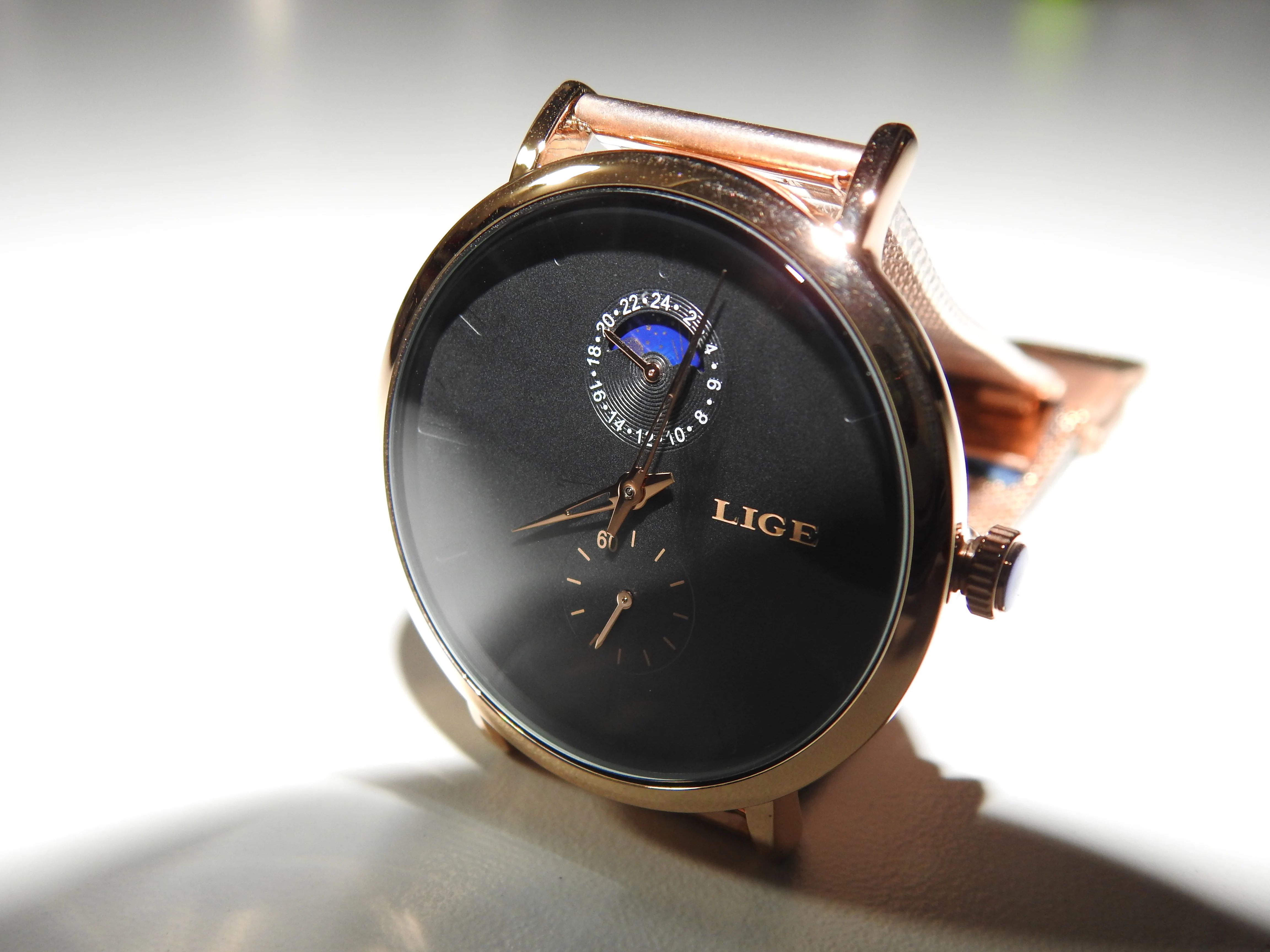 Часы Потрясающие. От упаковки до качества часов, все идеально. Превосходно смотрится на золотом и черном цветах. Есть три варианта внутри циферблата. 24 часовые часы, фазы Солнца и Луны и секундный циферблат отдельно. Мне понравилось.