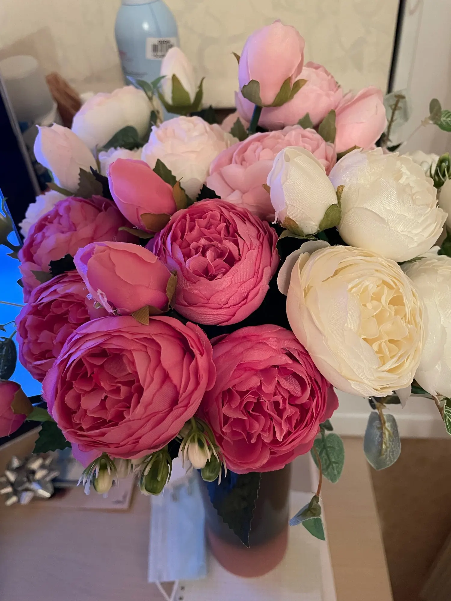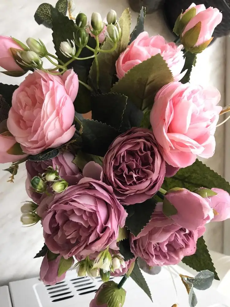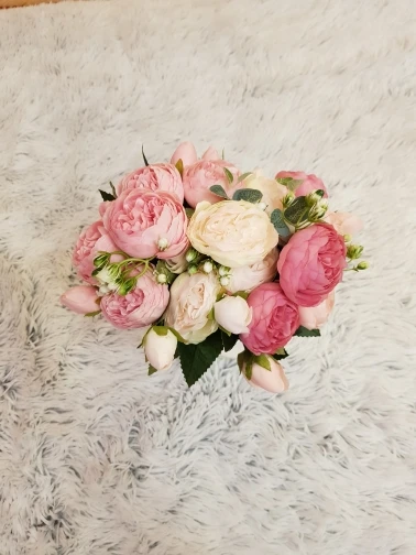 Очень красивые пиончики. Фото сделала сразу как достала. цветы не мятые, плотные, вообщем я очень довольна. Брала для фотофона. Доставка очень быстрая,. Продавца рекомендую. Планирую ещё белый букетик заказать