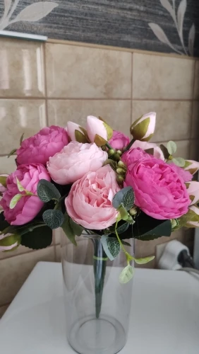 Отличный букет из трёх веточек пиона украшает мою кухню
