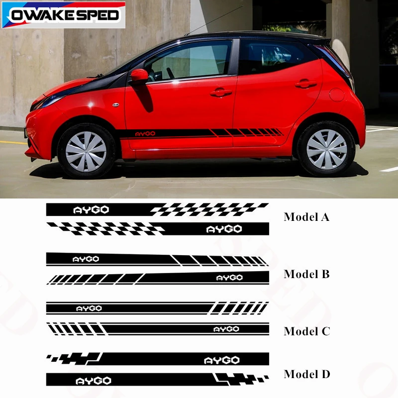 Спортивные гоночные полосы, наклейки на боковую дверь автомобиля, юбку для Toyota AYGO 2014-2018, аксессуары для кузова автомобиля, водонепроницаемые наклейки