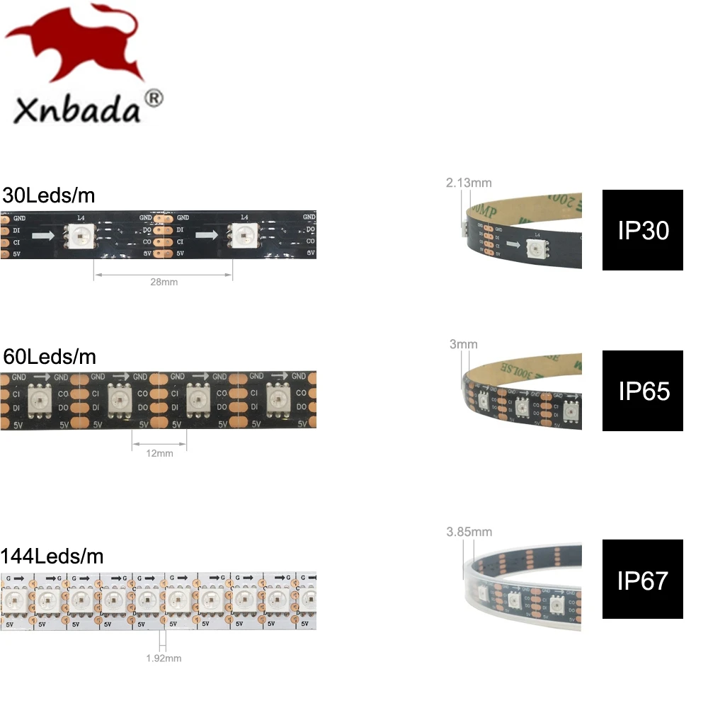 APA102 SK9822 2430607296144 светодиодовПикселиm Smart RGB Светодиодные полосы пикселей данных и часы отдельно DC5V IP30IP65IP67