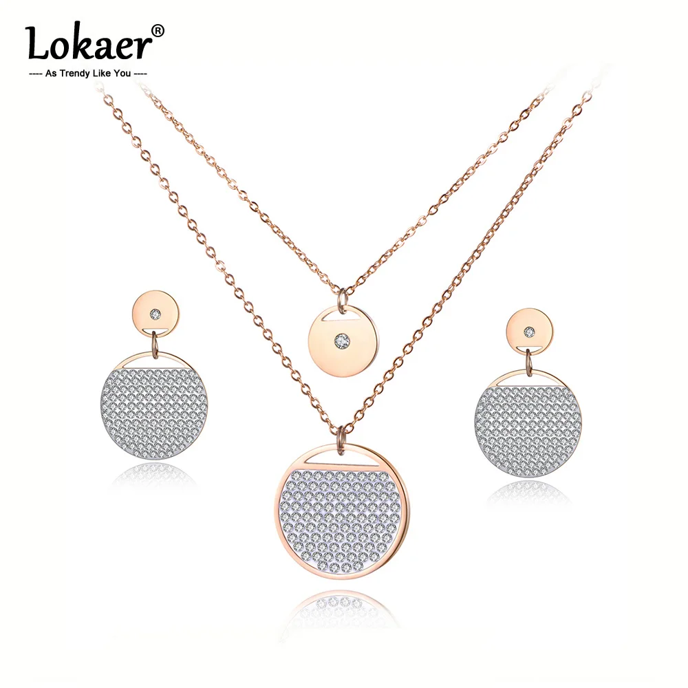Lokaer модные розовые Золотые круглые серьги из глины для невесты ожерелье серьги свадебные наборы для женщин ювелирные изделия SE025