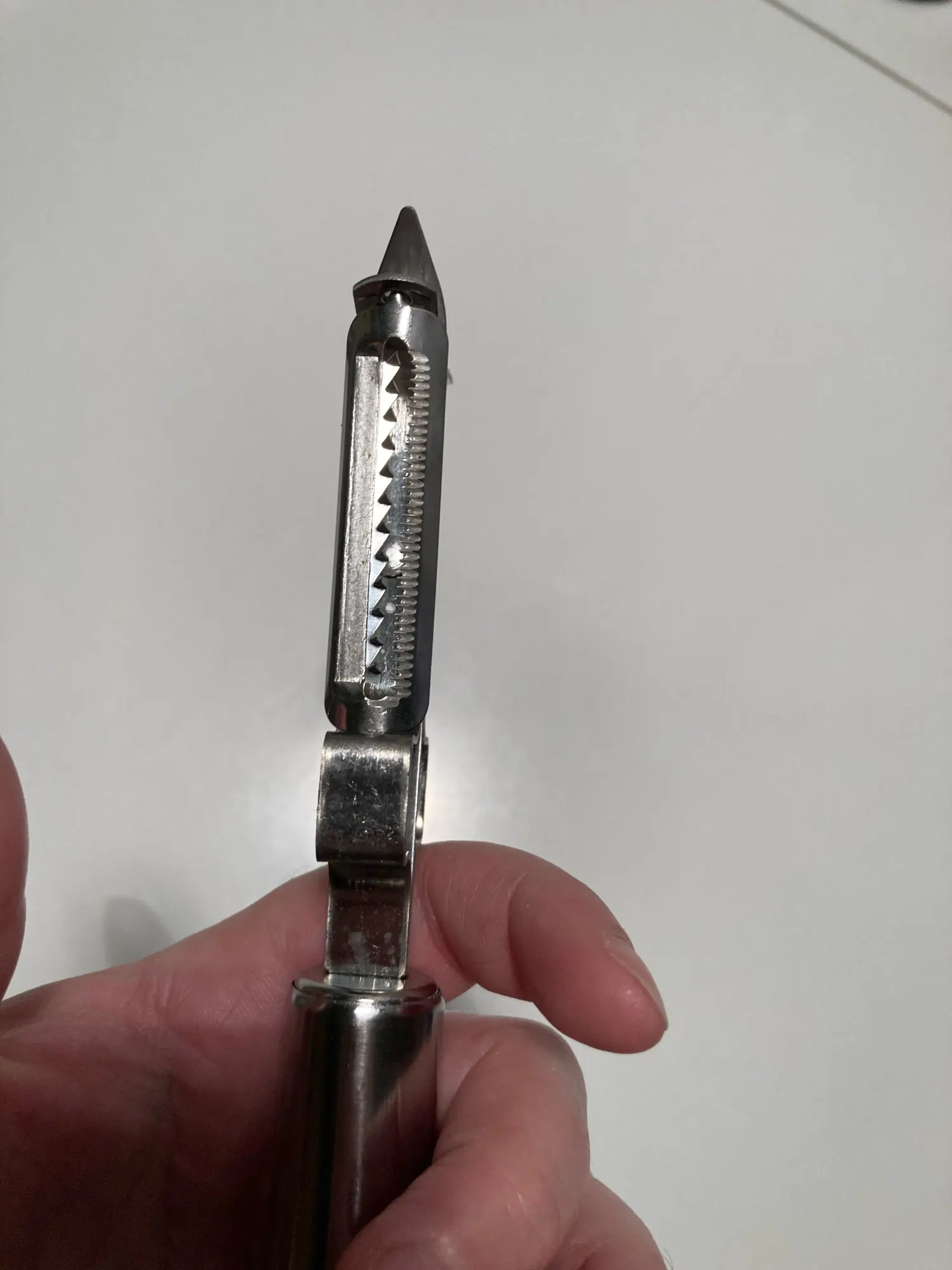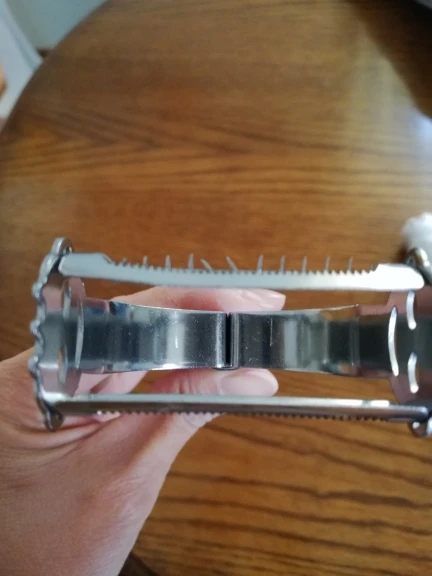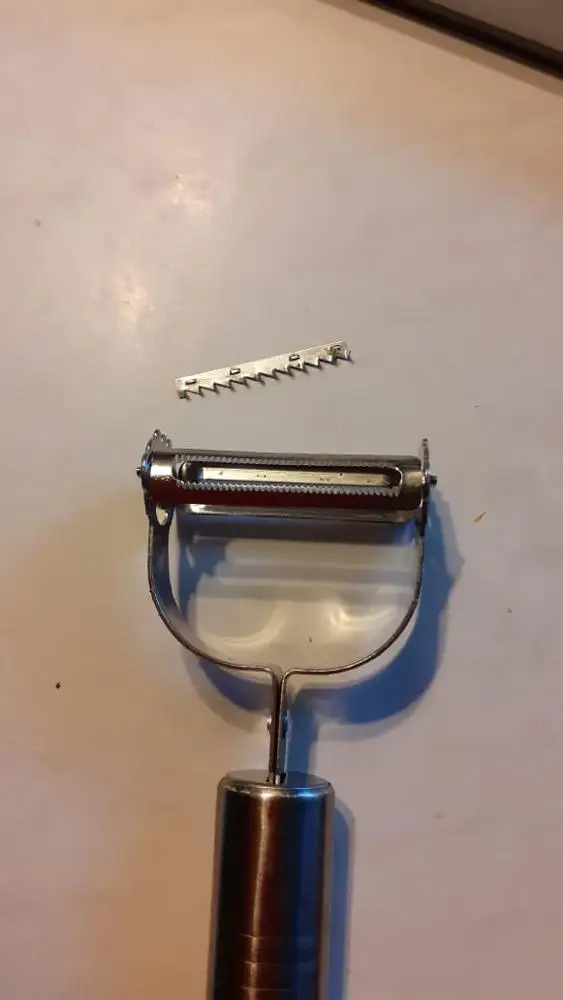 Беру уже вторую тёрку, первую подарила родителям. Терка огонь, очень острая, чистка овощей на ура, соломкой в том числе. Единственный минус - при сильном нажиме и активной эксплуатации может вылетать из ручки. Проблема решается одним саморезом.