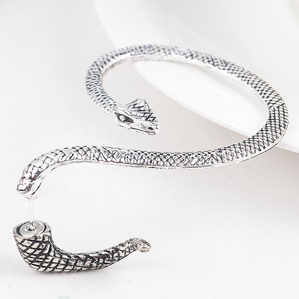 Серьги-каффы в ретро стиле, готика Рок Панк в форме змеи, серьги-кл...