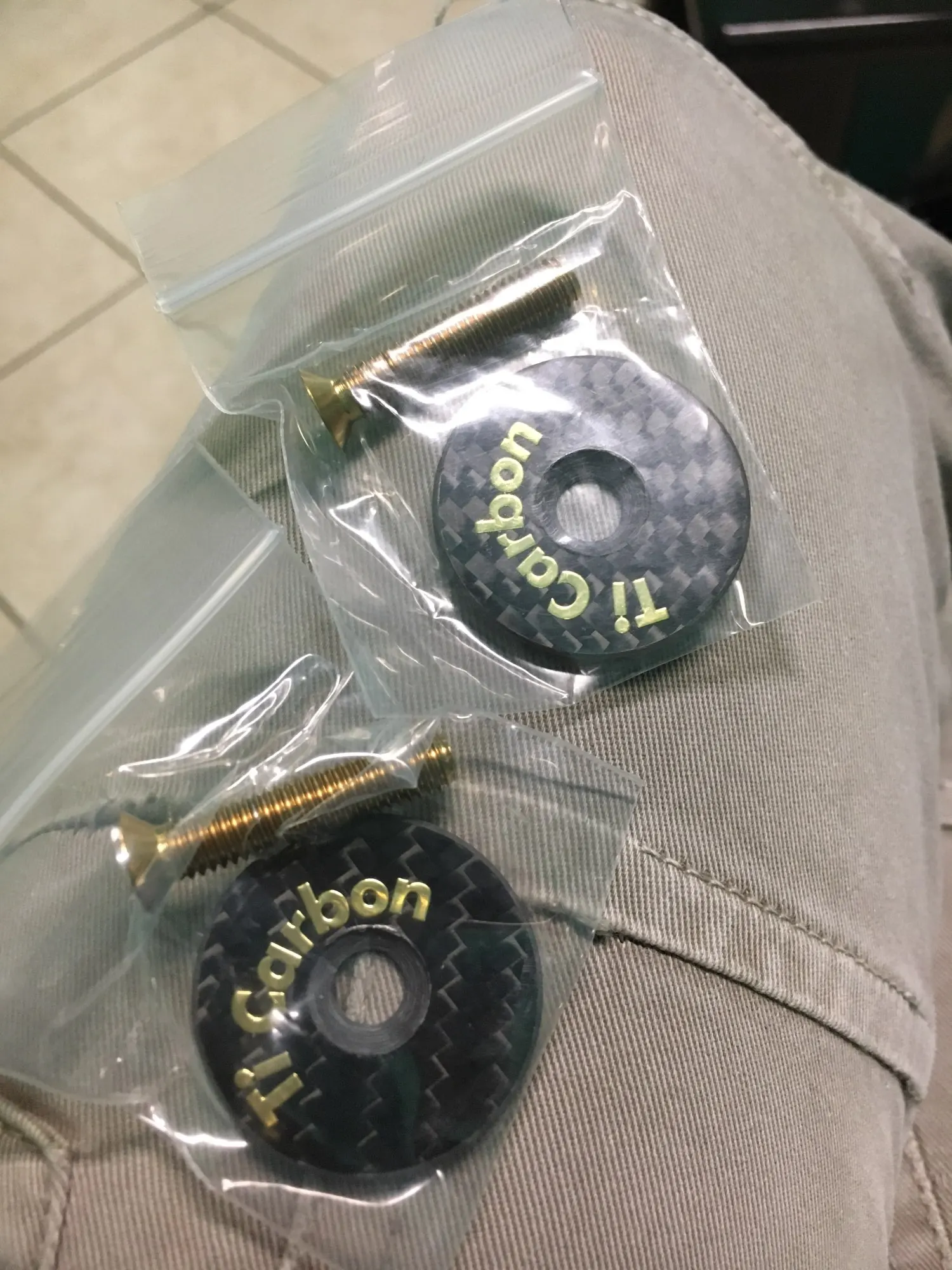 Как в описании. Болт из титанового сплава, скорее всего, не является магнитным. Болт не полностью утоплен-крышка может быть спроектирована лучше-но это делает гарнитуру более безопасной на месте, так как больше углеродного волокна есть для поддержки предварительной нагрузки. Супер быстрая доставка-10 дней в Испанию и в комплекте с другими заказами aliexpress.