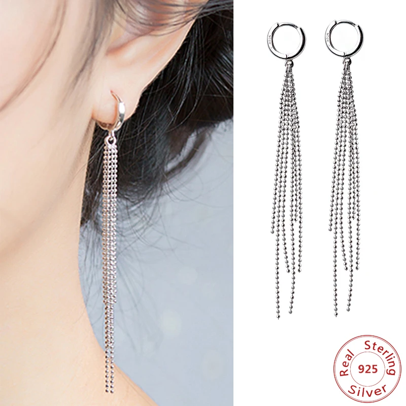 Длинные висячие серьги с кисточками из стерлингового серебра 925 пробы, высококачественные серьги, новые модные Висячие длинные висячие серьги с бисером
