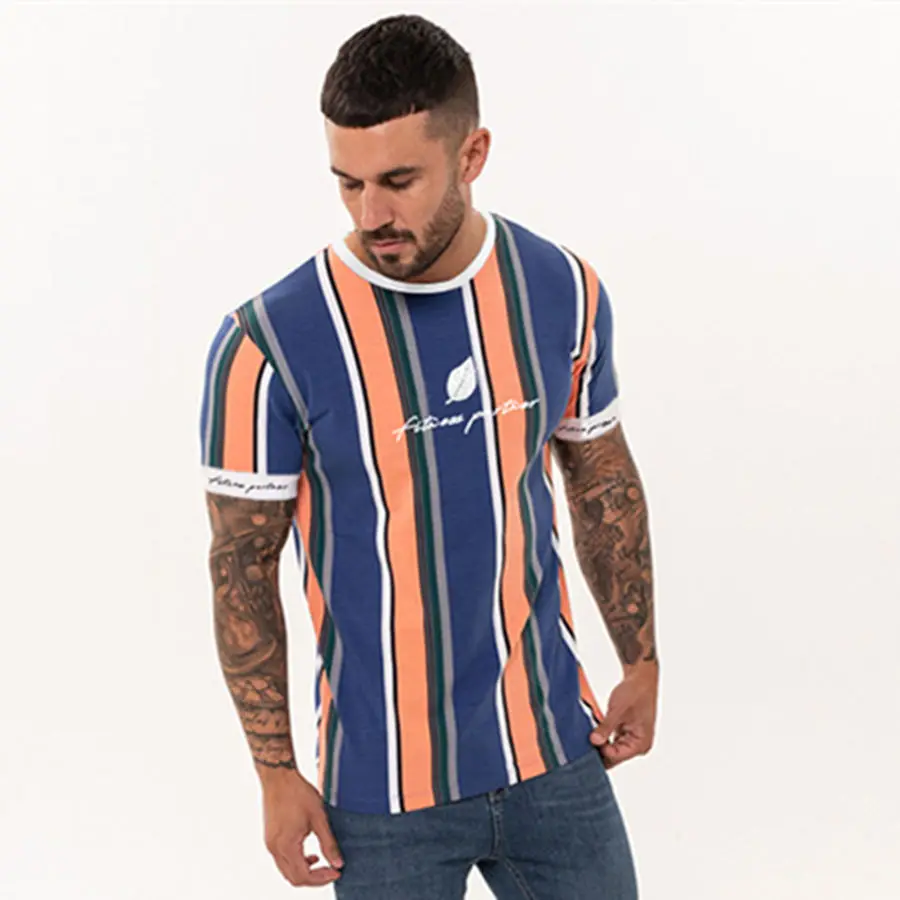 Новая мужская креативная полосатая футболка Летняя свободная футболка с коротким рукавом мужская повседневная модная футболка в стиле хип-хоп топы уличная брендовая одежда