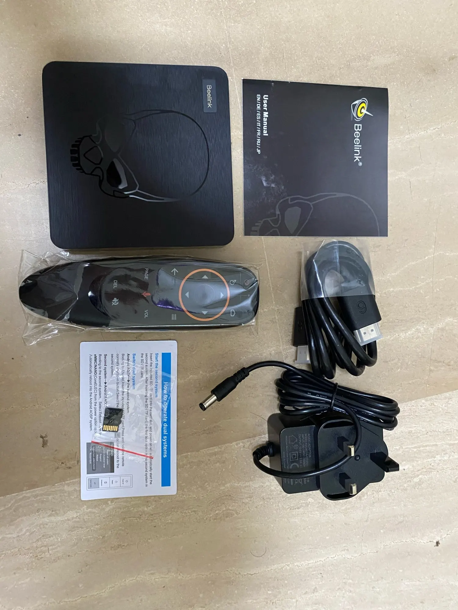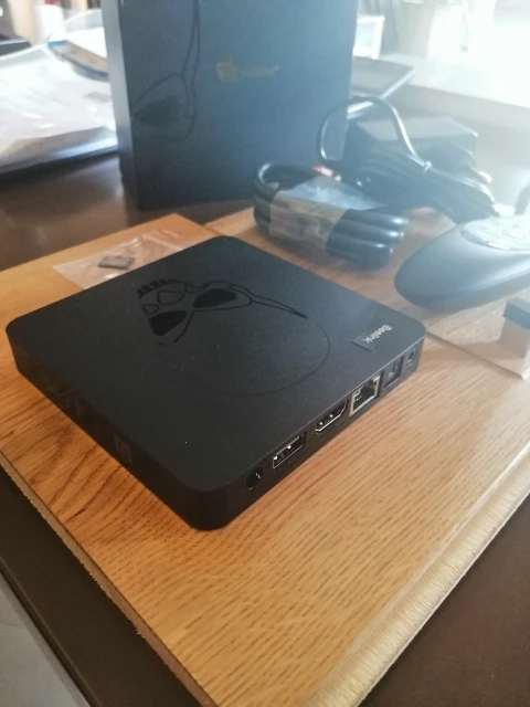 посылка шла 3 месяца. к приставке вопросов нет, работает шустро. греется в меру. на просмотре он лайн фильма тормозов не было. в комплекте идёт микросд флэшка, при ее установке, приставку можно загрузить либо в Андроид, либо в Коди.