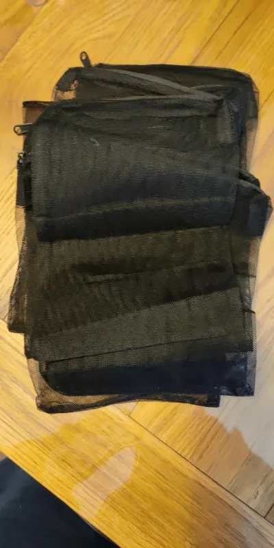 Super fast shipping of only 24 days to me in Canada. Mesh bags are perfect. Correct measurements, stitching is good, zippers work fine. The hole size of the Mesh is large enough for good water flow. I recommend these bags.