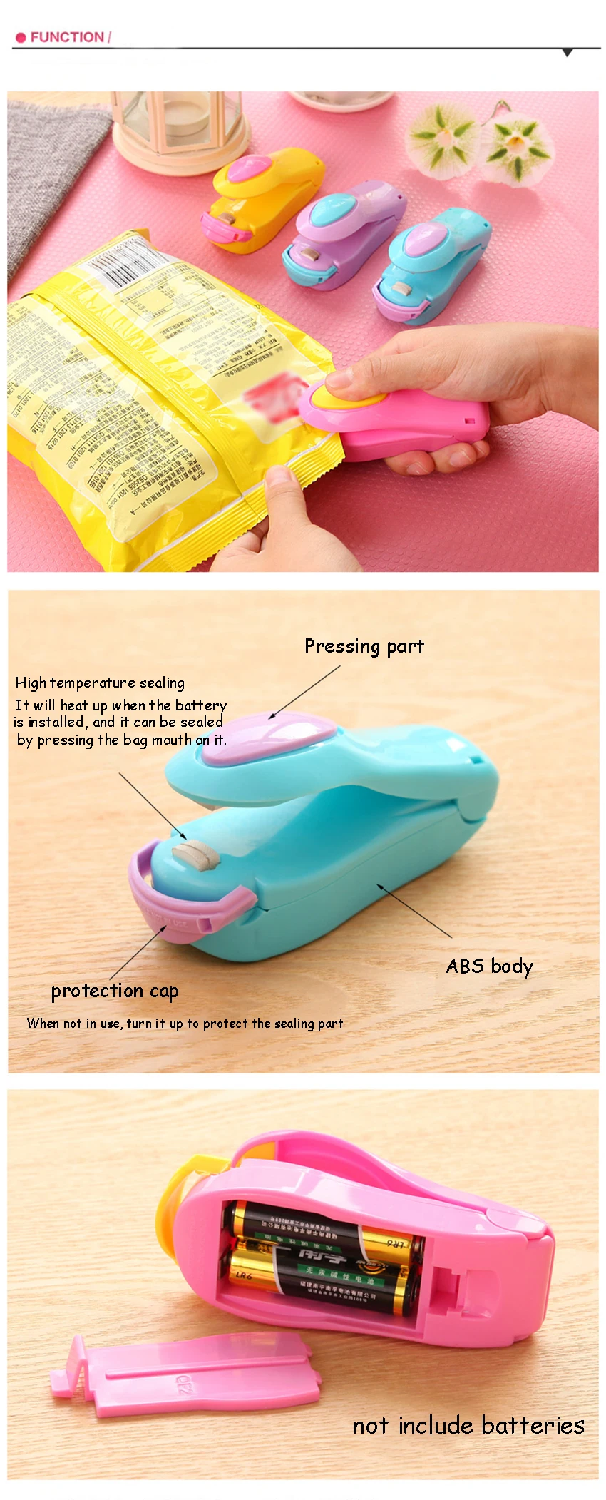 Бытовой ручной мини-термоуплотнитель, портативный магнитный упаковщик для пищевых продуктов, конфетные цвета, пакеты для закусок, устройства для герметизации