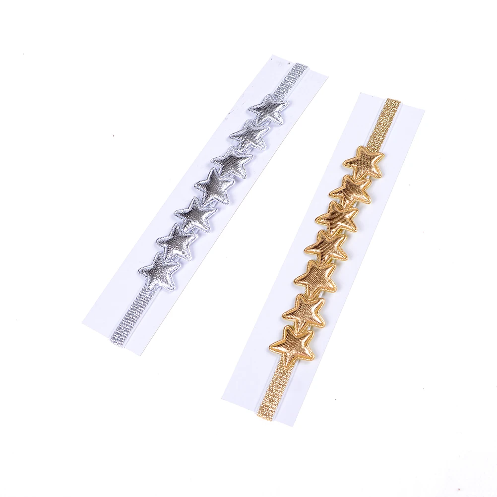 YundflyМодная повязка на голову для новорожденных девочек золотистого и серебристого цвета с пятиконечной звездой