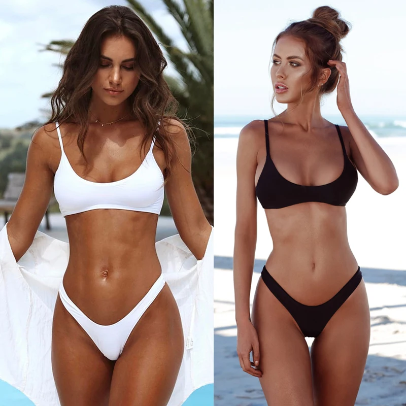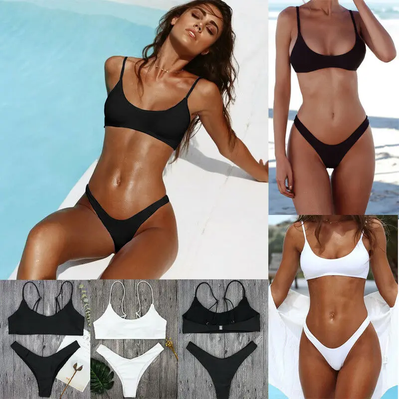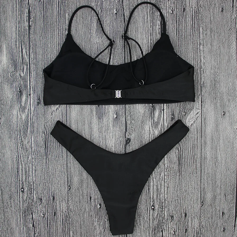 2020 новый летний женский сексуальный мягкий бюстгальтер бикини набор сплошного бинта пуш-ап треугольник Купальник черный
