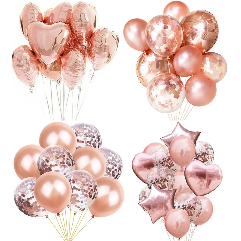 Набор конфетти розовые и золотые воздушные шары, латексные шары, свадебные шарики, украшения для дня рождения, детский праздник