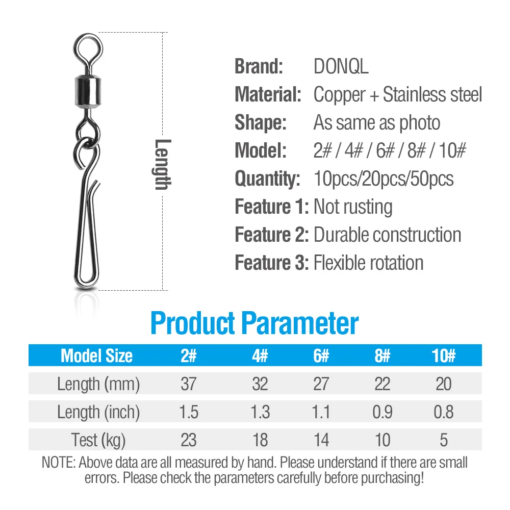 DONQL 102050 шт. рыболовные Вертлюги соединитель 2 #-10 # блокировочный штифт защелкивающийся Вертлюг для рыболовного крючка приманка для карпа на рыбалку аксессуары