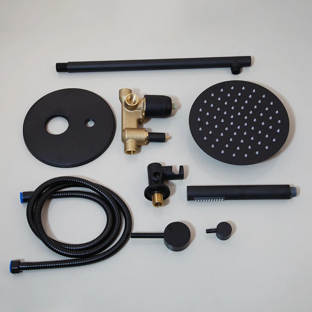 KEMAIDI 8-дюймовый черный круглый современный дождевой настенный смеситель для душа в ванную комнату, наборы насадок для душа и насадок для ручного душа