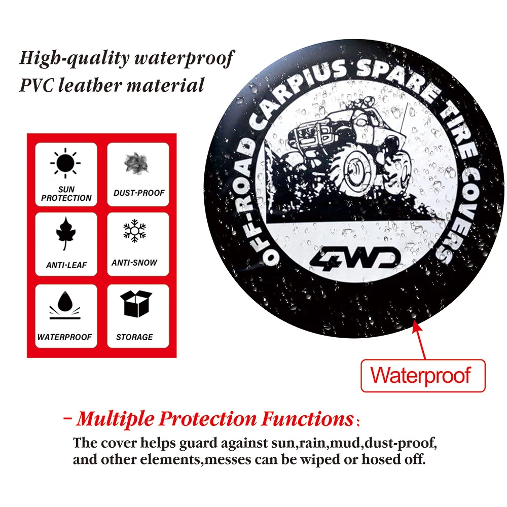 Сверхпрочный кожаный чехол для запасного покрытия из ПВХ, 14, 15, 16, 17 дюймов, защита автомобильных аксессуаров, водонепроницаемость 4WD, покрытие для автомобильной покрышки