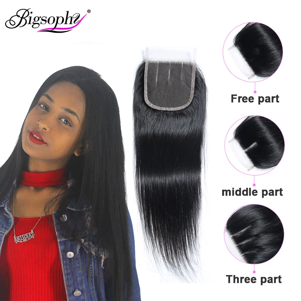 Bigsophy бразильские волосы прямые closure100 % человеческие волосы 8-22 дюйма 4*4 Кружева Закрытие Remy волосы ткачество швейцарское кружево фронтальное закрытие
