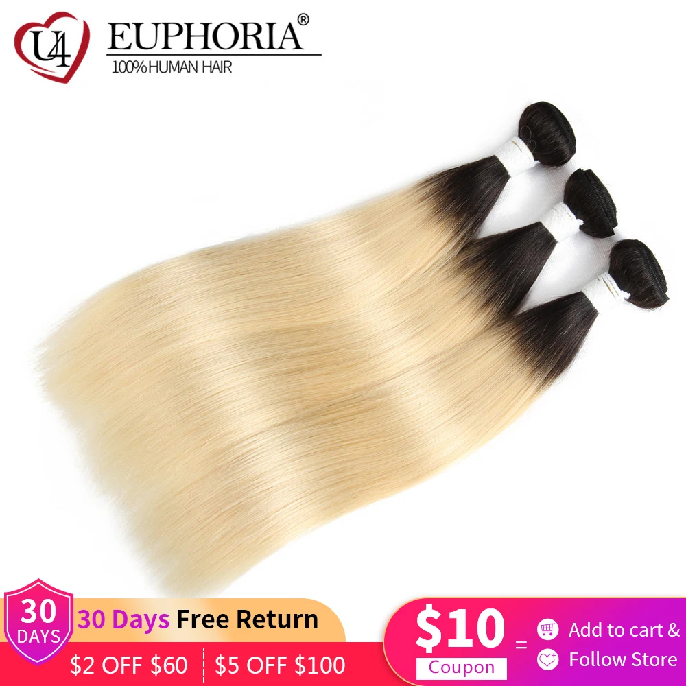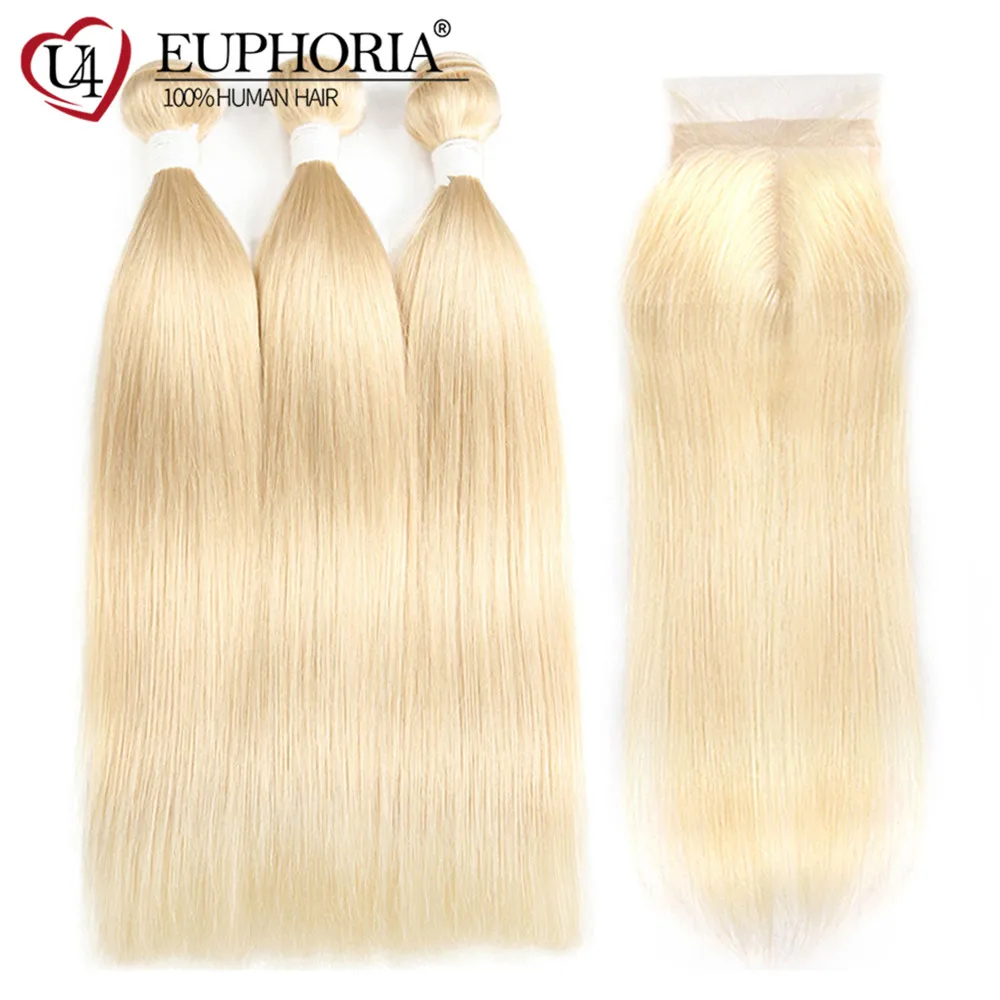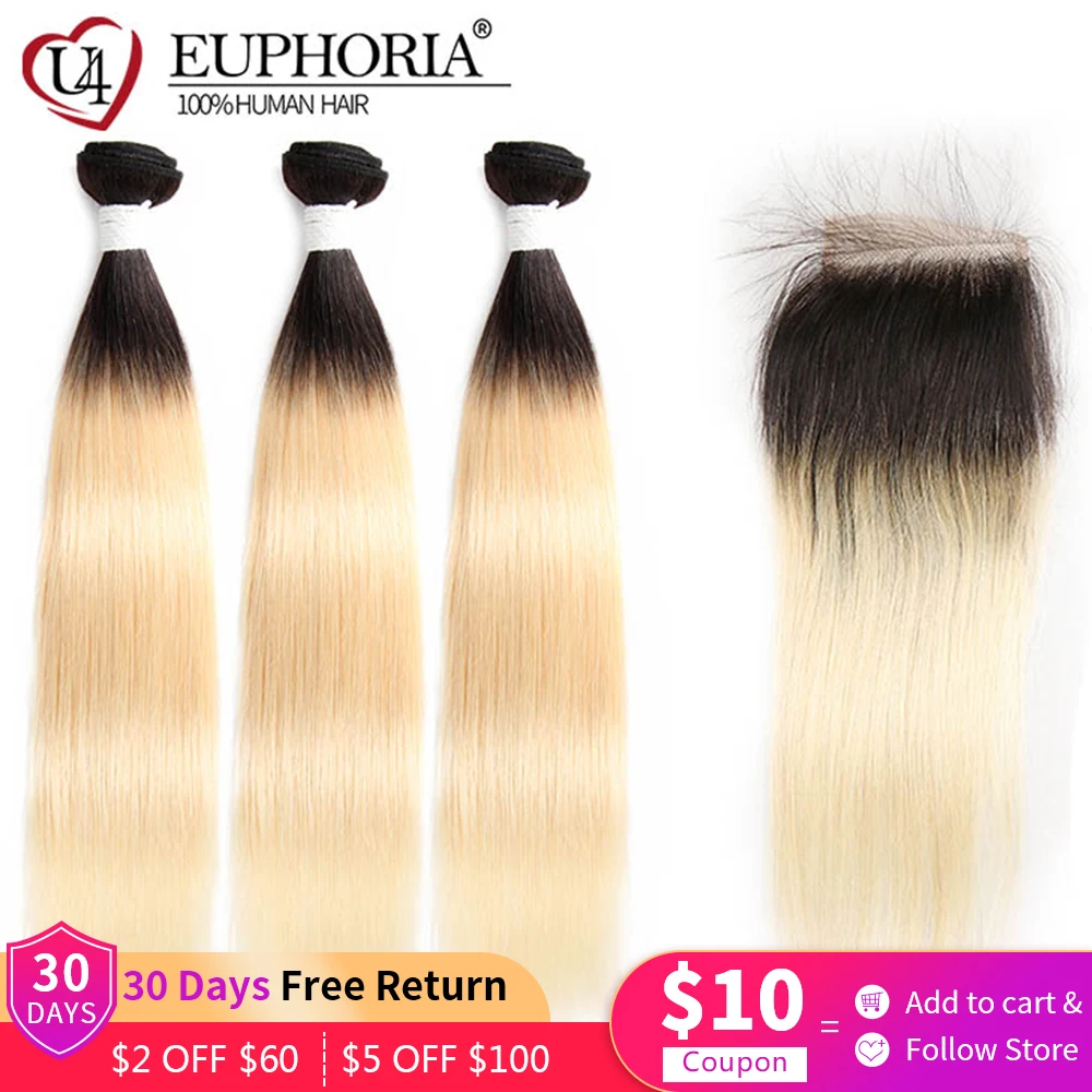 1B 613 прямые пряди волос с закрытием 4x4 бразильские человеческие волосы Remy пряди с кружевной застежкой Омбре Платина блонд EUPHORIA