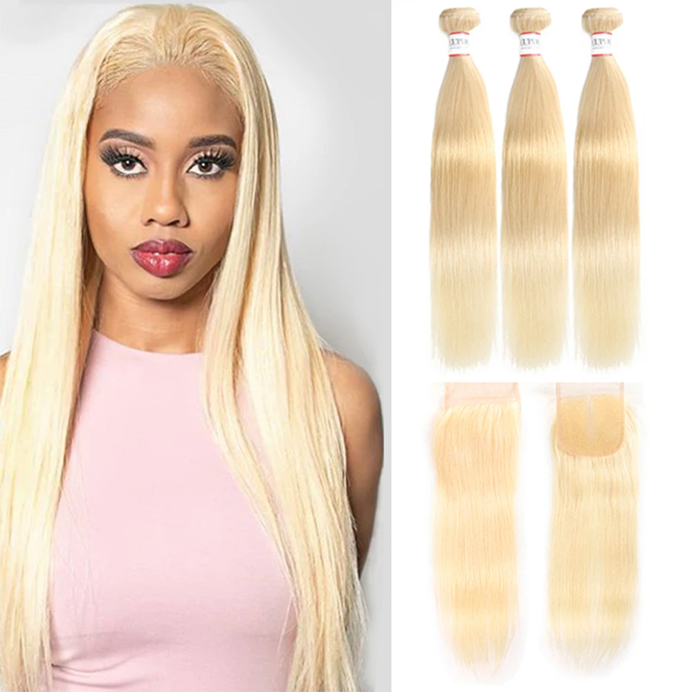 1B 613 прямые волосы пучки волос с закрытием 4x4 бразильские человеческие волосы Remy в пучках с закрытием кружева эффектом деграде (переход от темного к платиновой блондинки из EUPHORIA